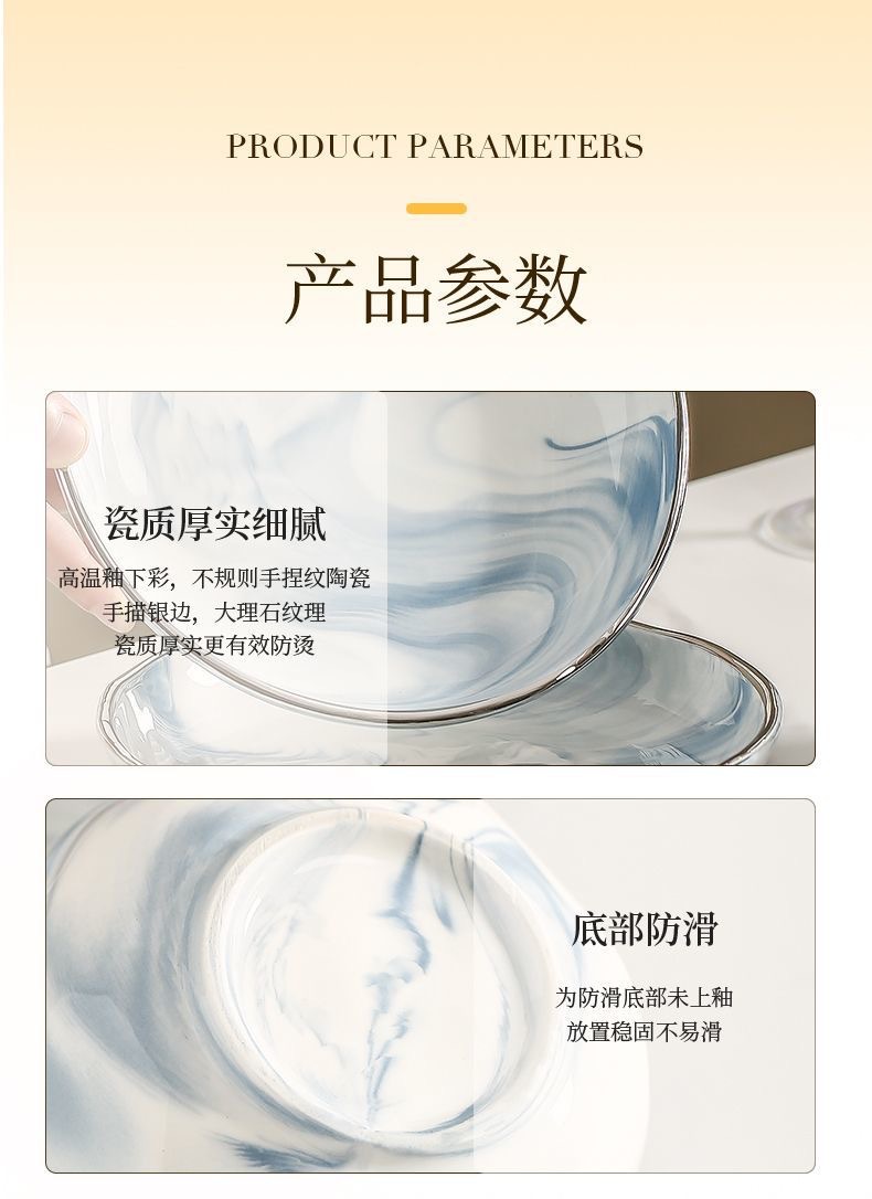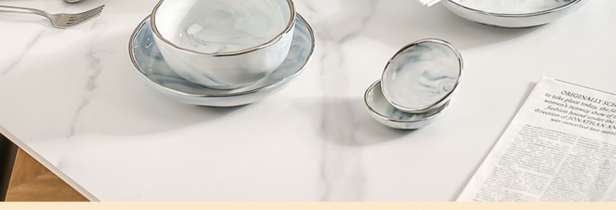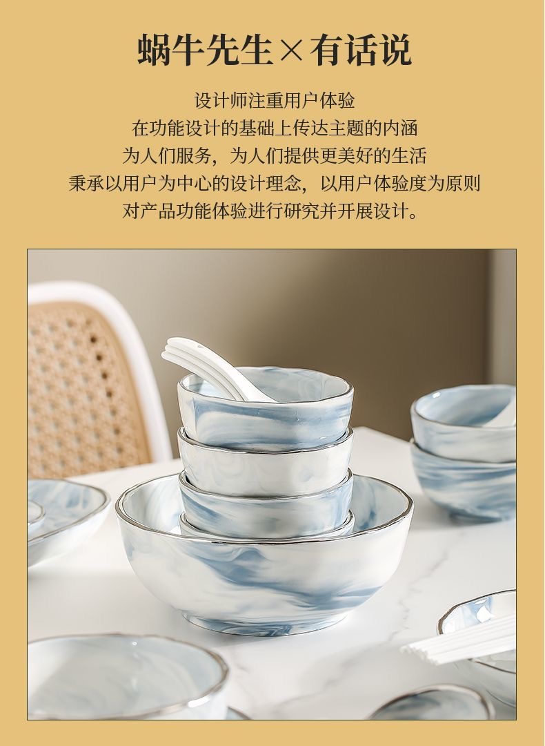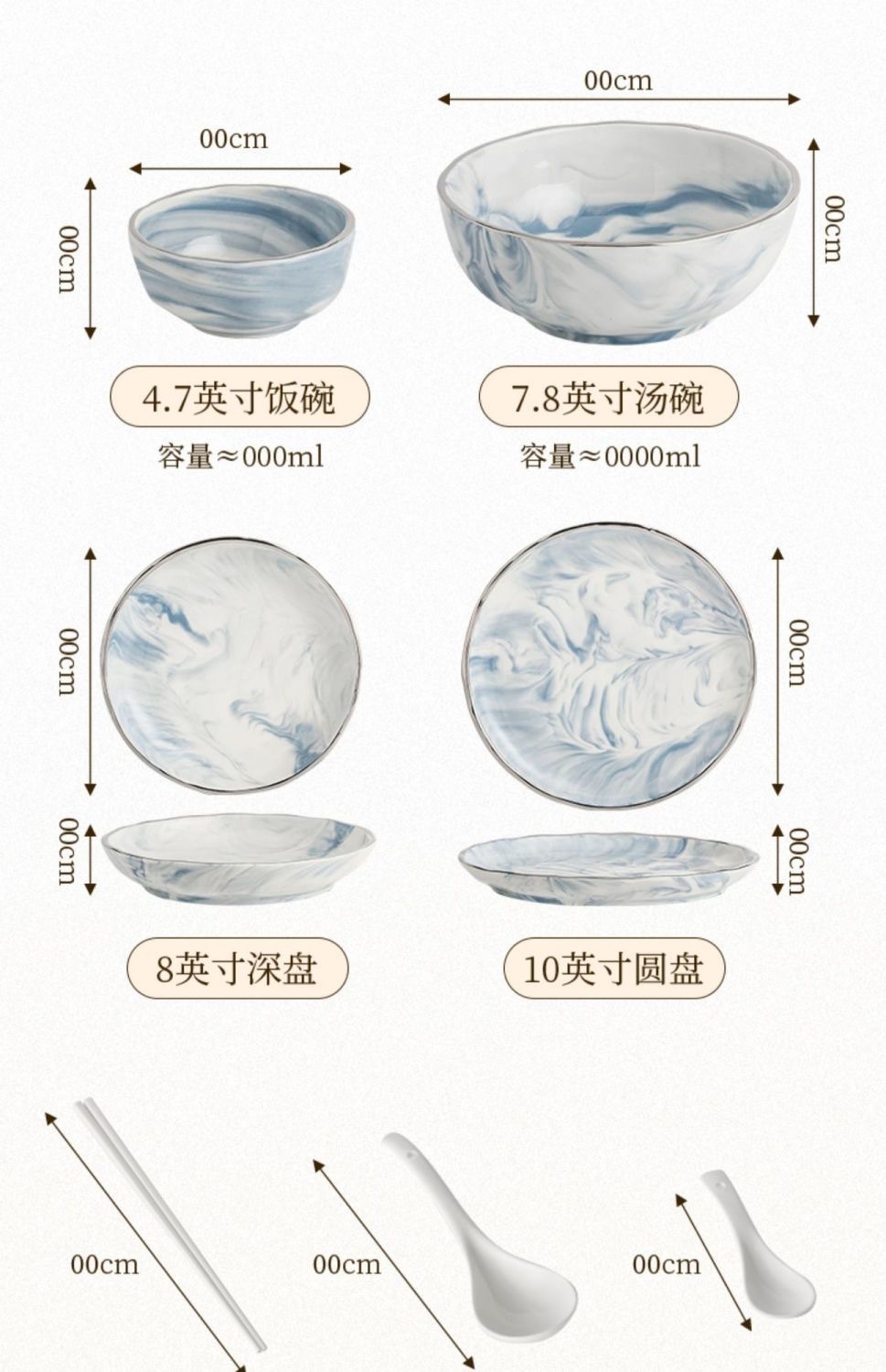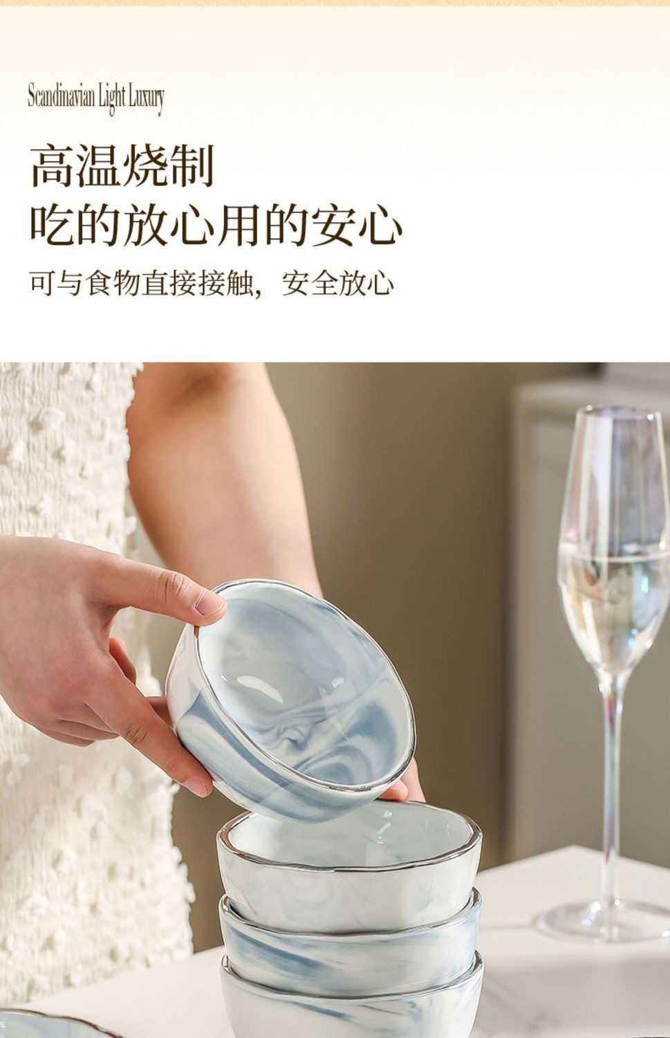 Nordic Light Luxury Marble Pattern Ceramic Tableware Set Household Internet Celebrity Rice Bowl Dish Fish Plate High-end Housewarming Gift