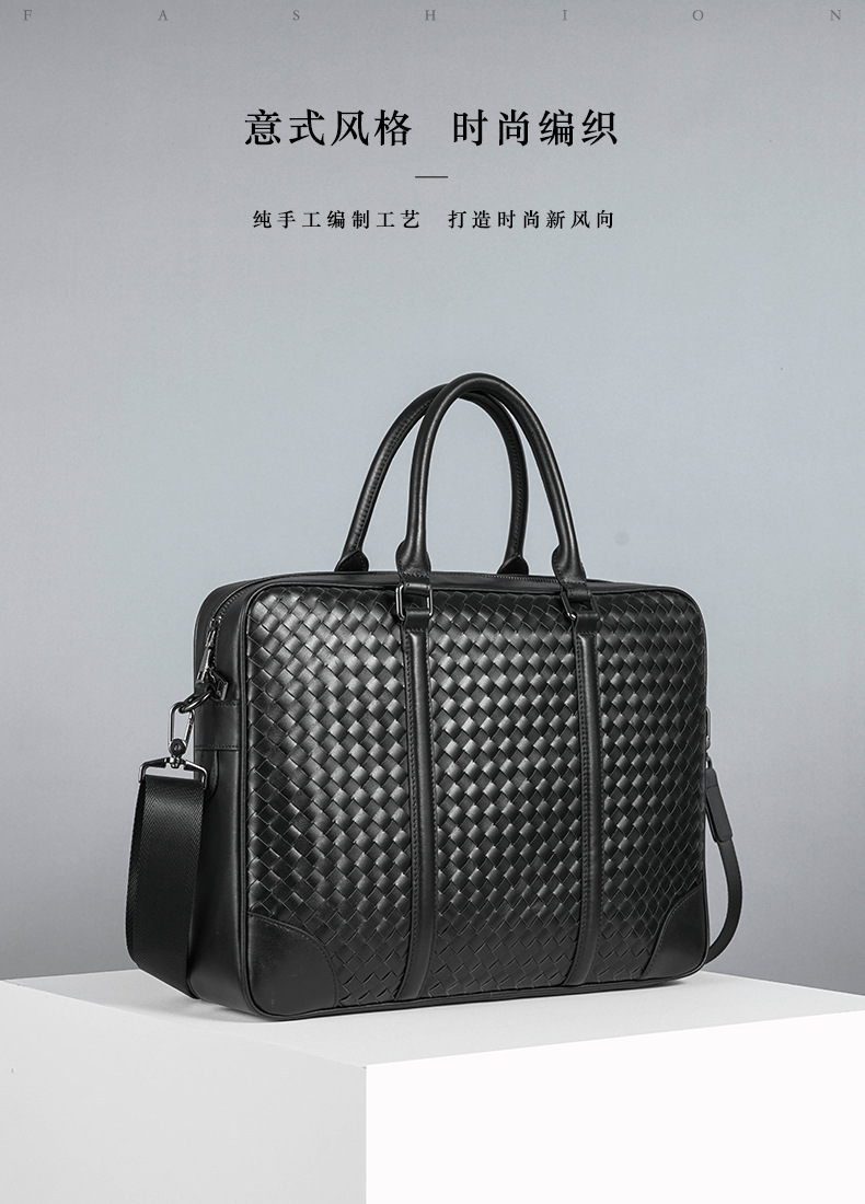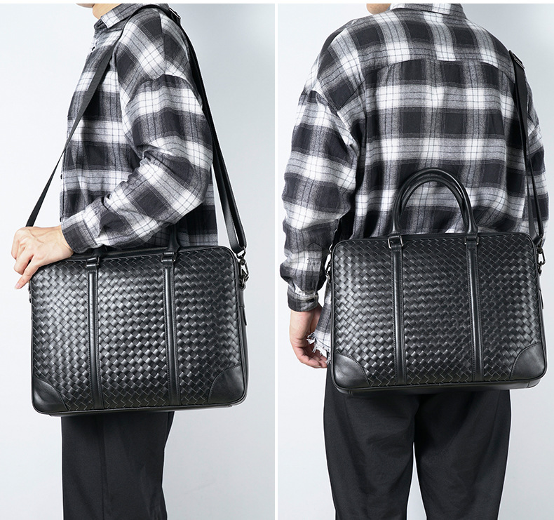 Woven Genuine Leather Men's Handbag Fashion Business Shoulder Crossbody Bag Travel Large Capacity Computer Briefcase in Stock