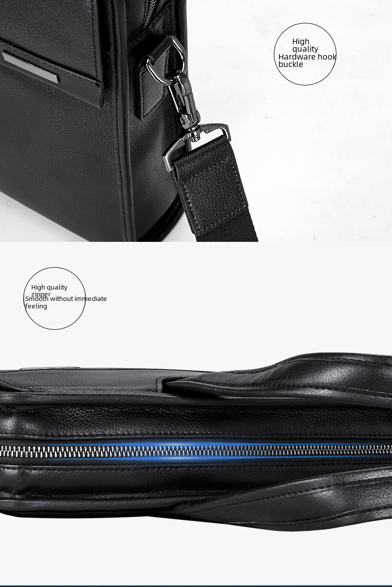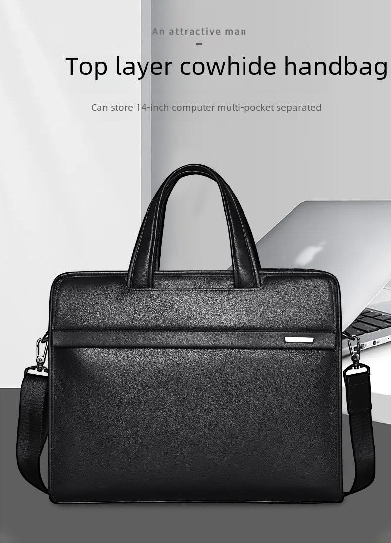 Genuine Leather Material:Crafted from high-quality headlayer cowhide, this men's handbag offers a luxurious feel and superior durability. It's perfect for the man who appreciates quality and style.