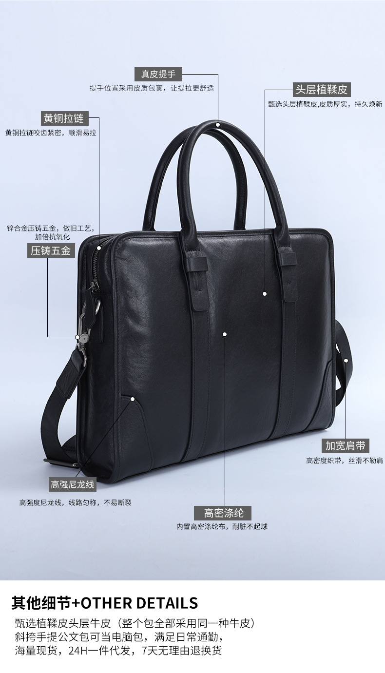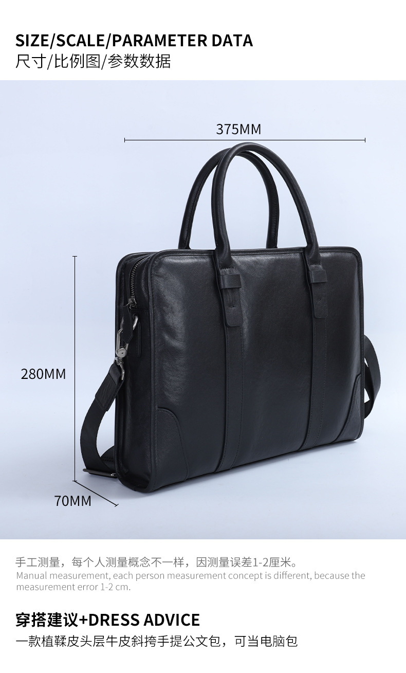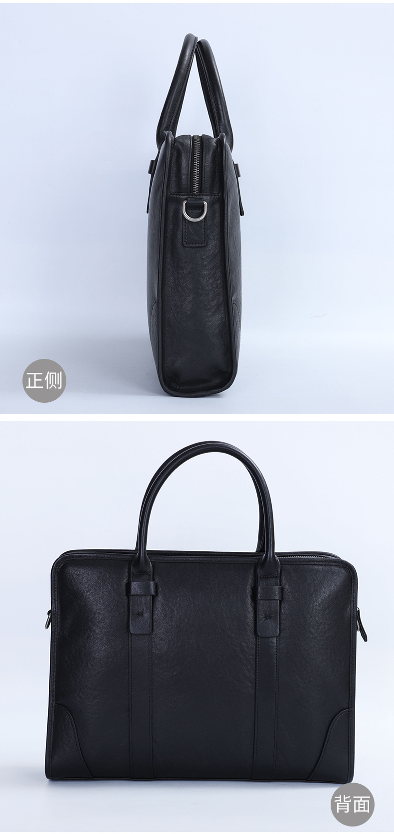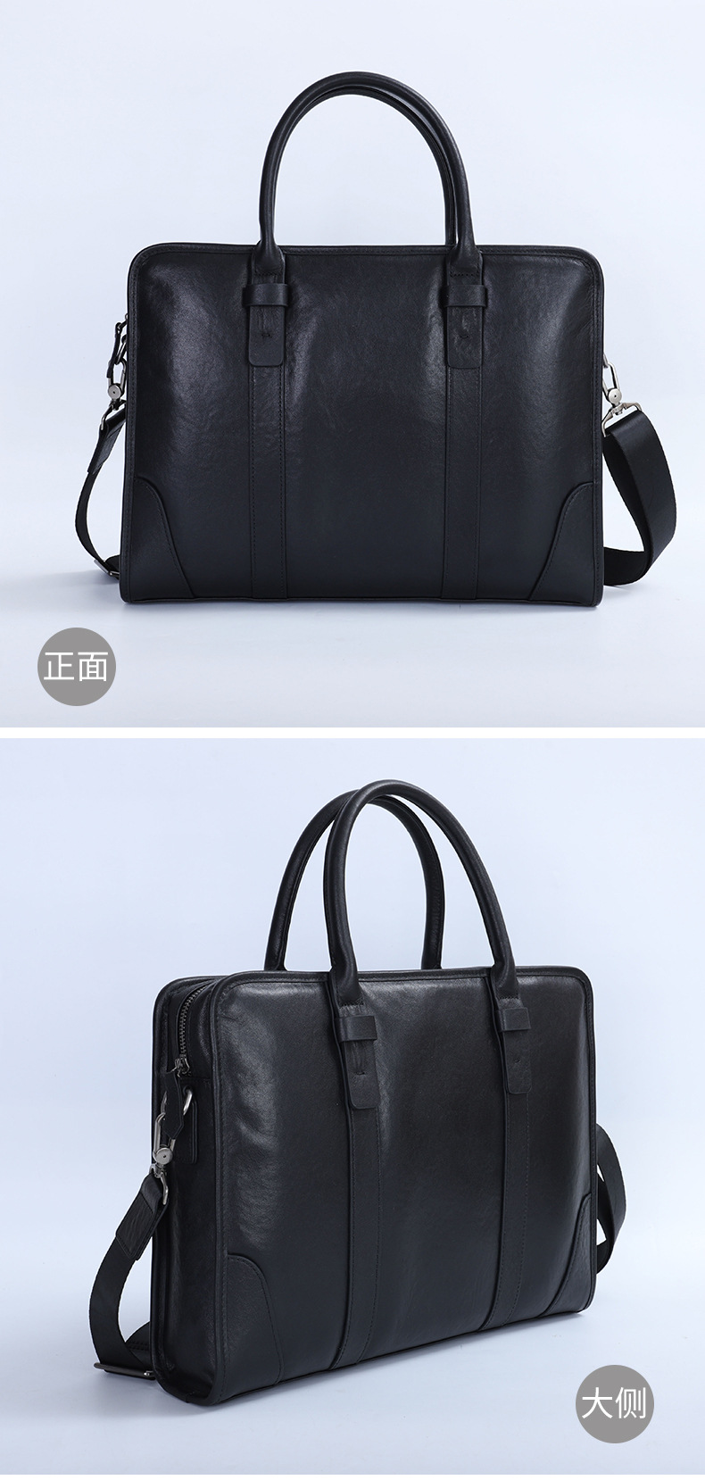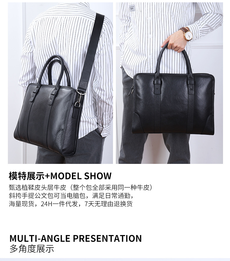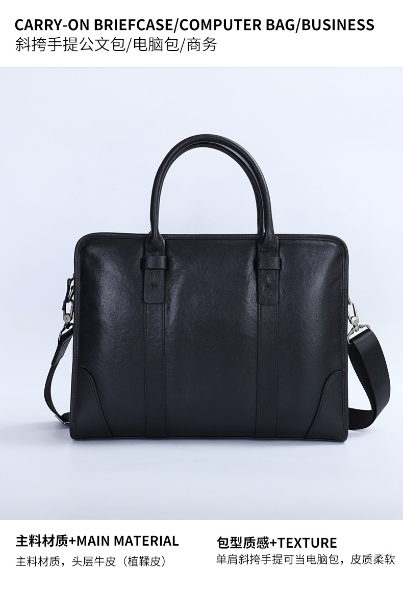 Cowhide briefcase men's crossbody casual simple leather business lawyer bag commuter black men's bag portable large capacity