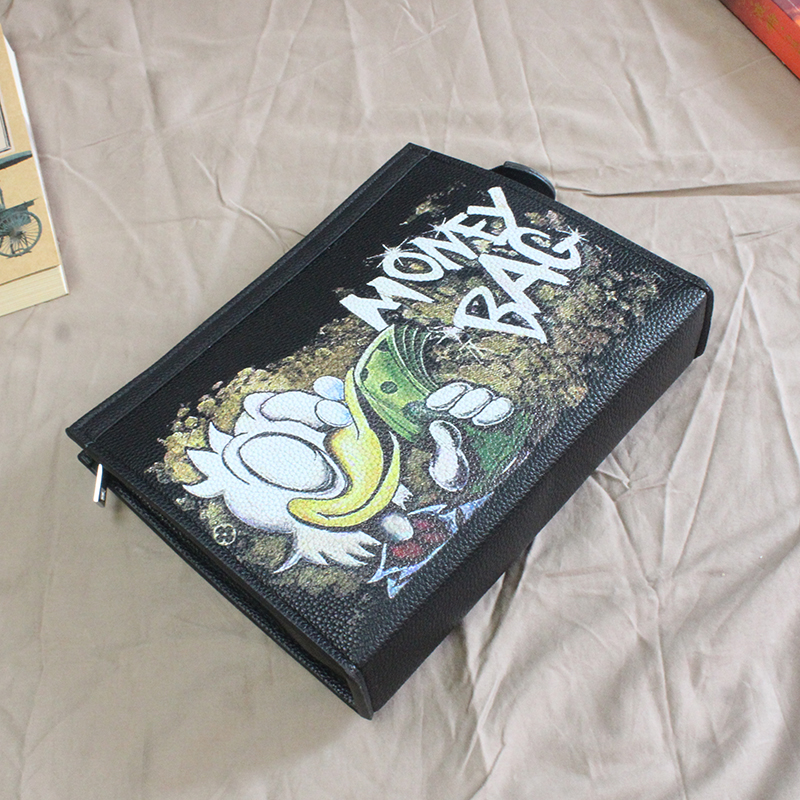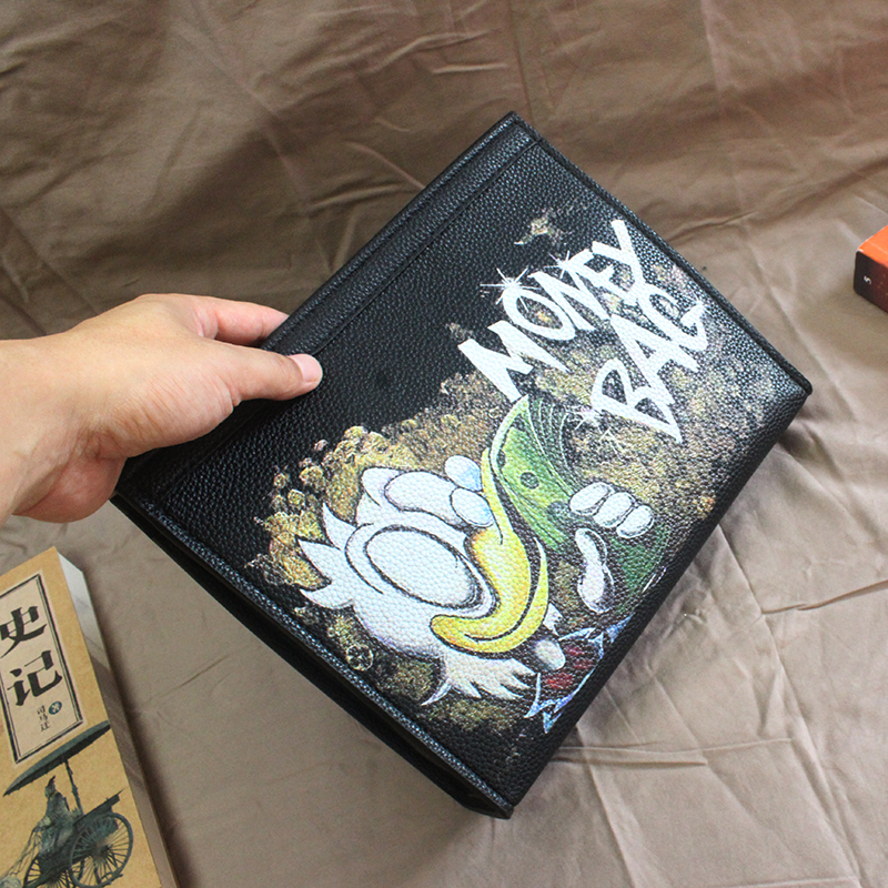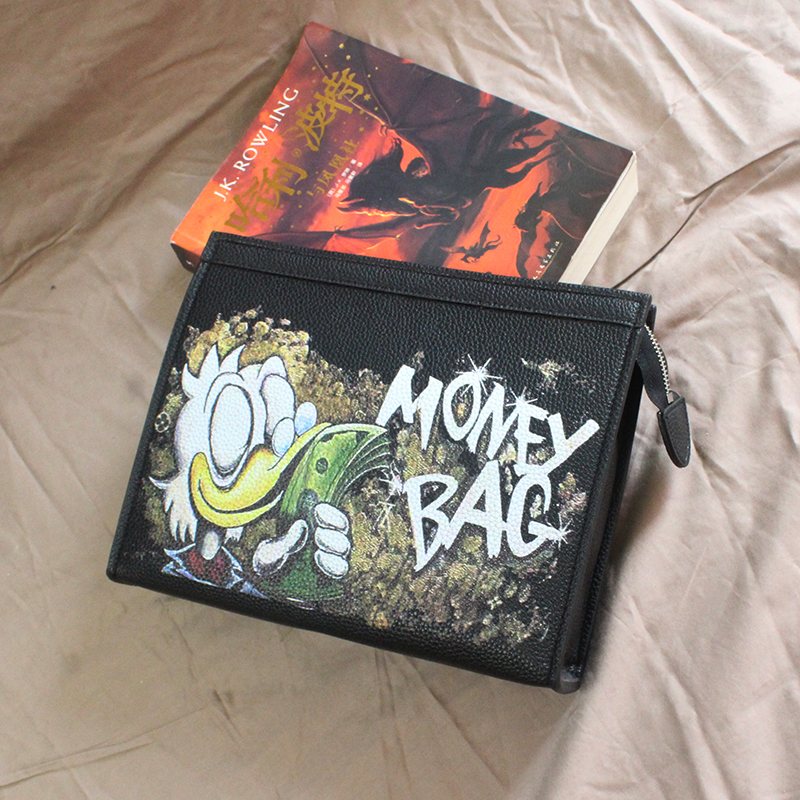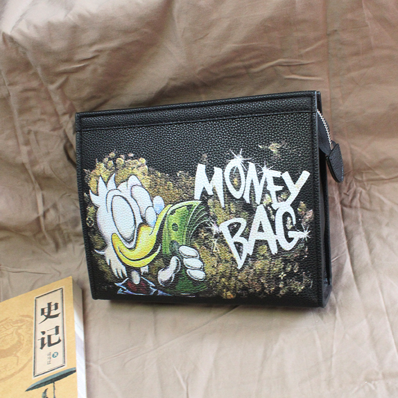 Money Bag Donald Duck Handbag Rich Graffiti Clutch Bag Men's Soft Leather Personality Clamp Bag 2023 New Social