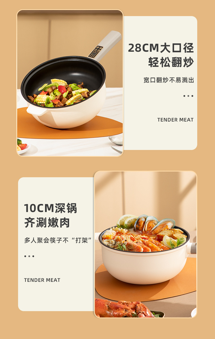 Multi-functional Electric Stir-frying Pan Household Electric Cooking Hot Pot Student Dormitory Cooking Integrated Cooking Pan Non-stick Frying Pan
