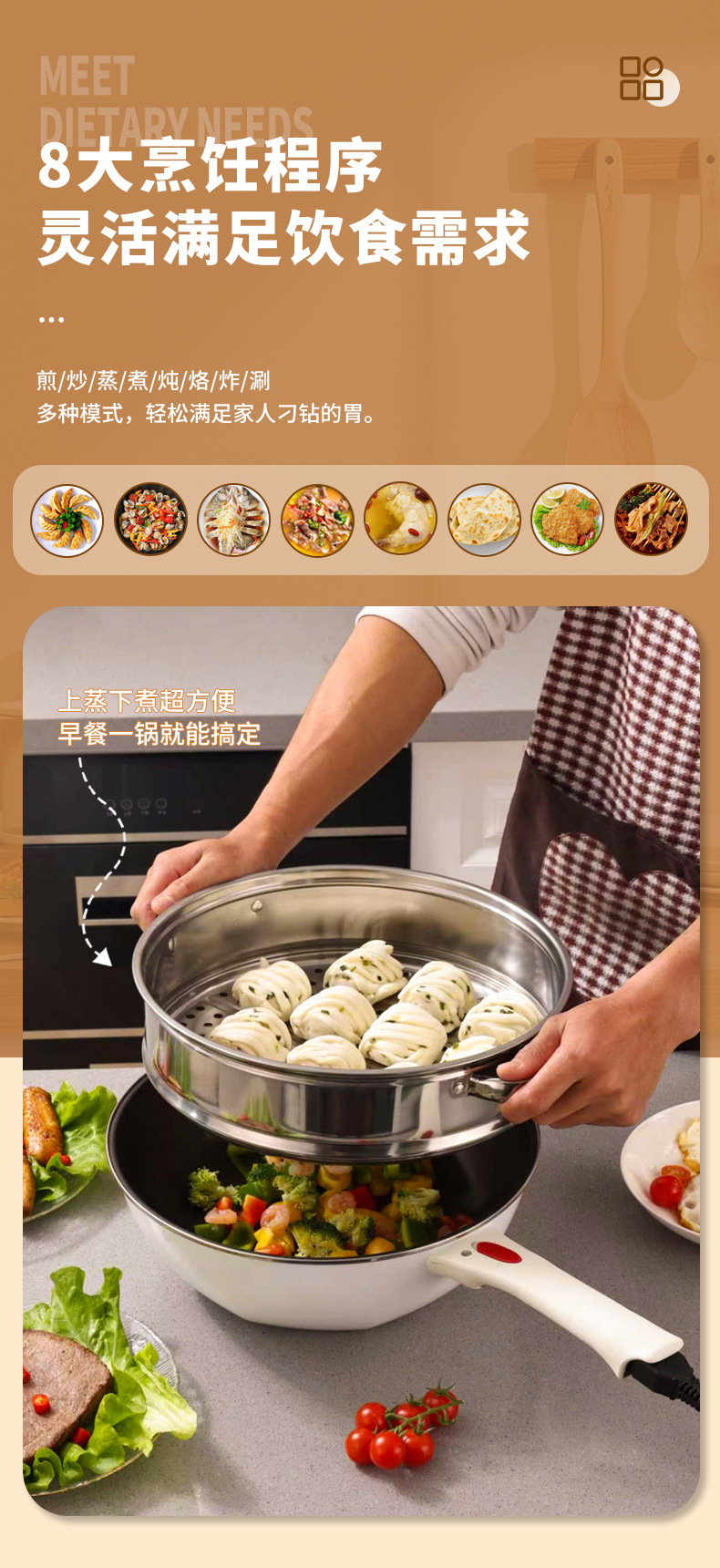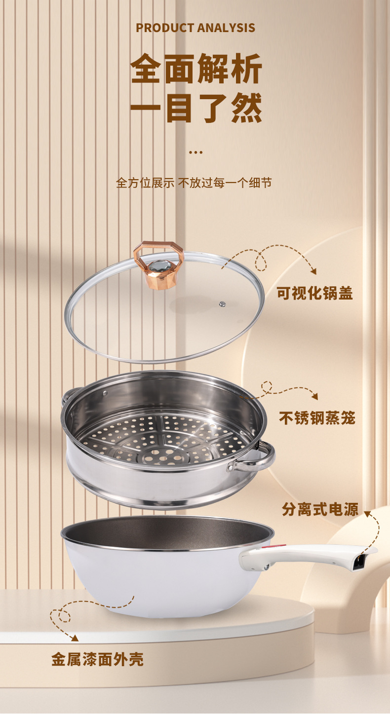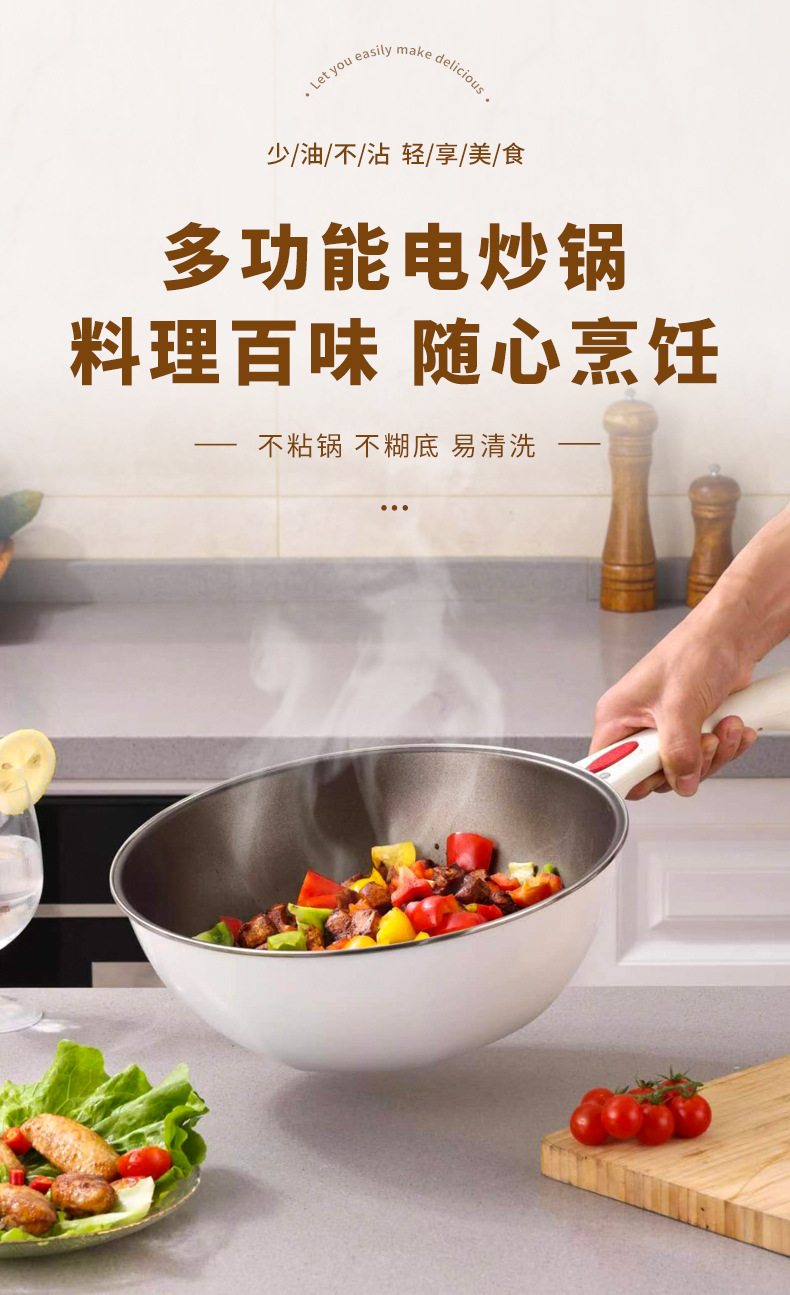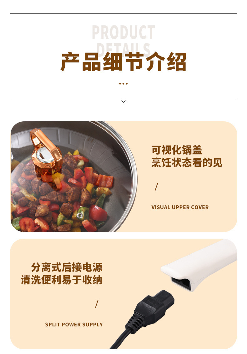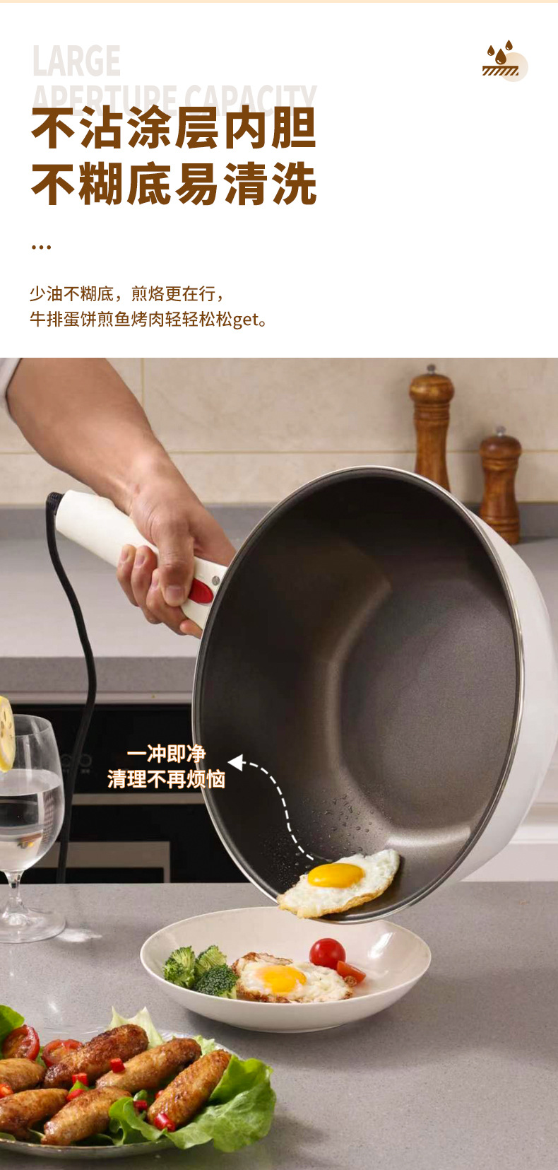 Household multi-functional integrated electric wok plug-in kitchen cooking non-stick pan high-power electric hot pot high temperature hot wok