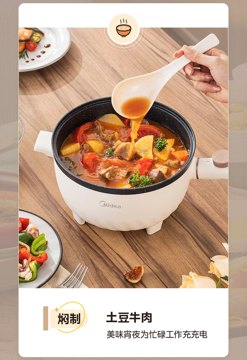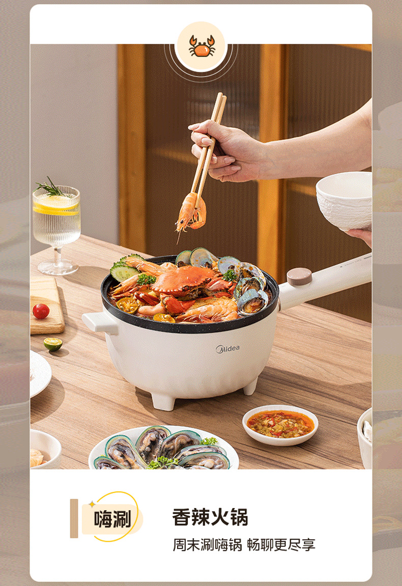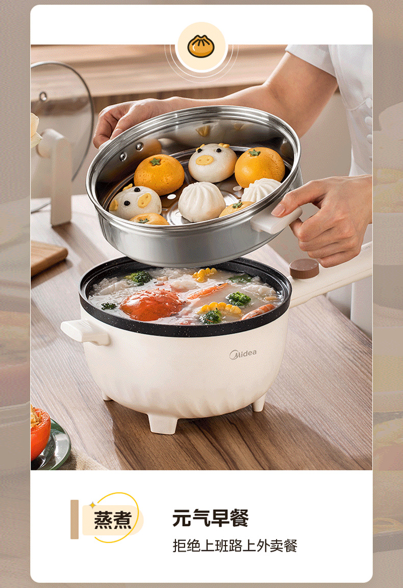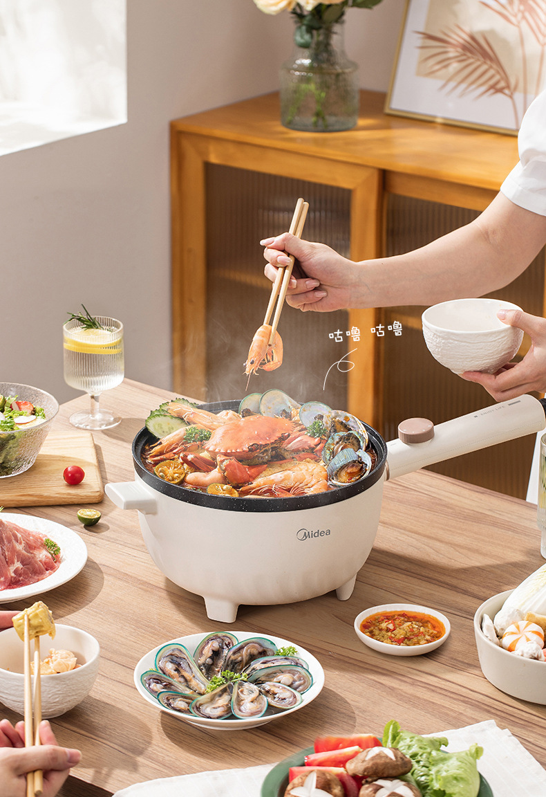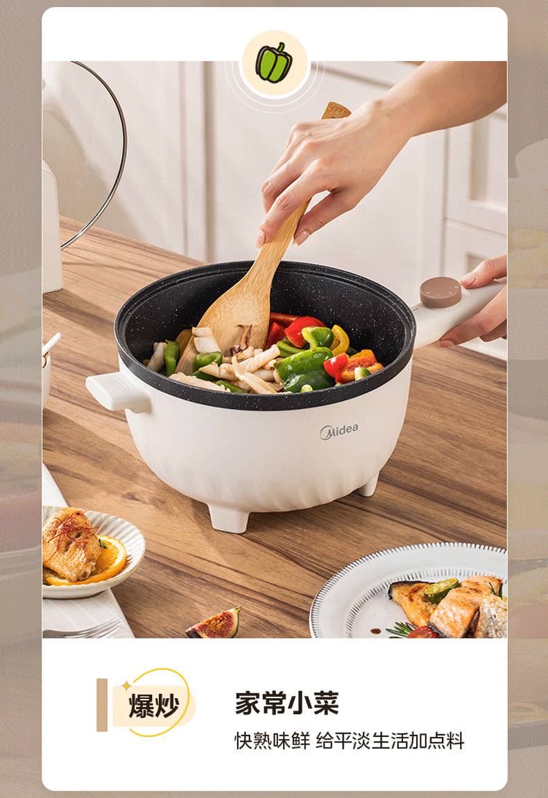 Midea electric wok household cooking pot multi-functional cooking hot pot dormitory steamer integrated pot MC-HGE2515