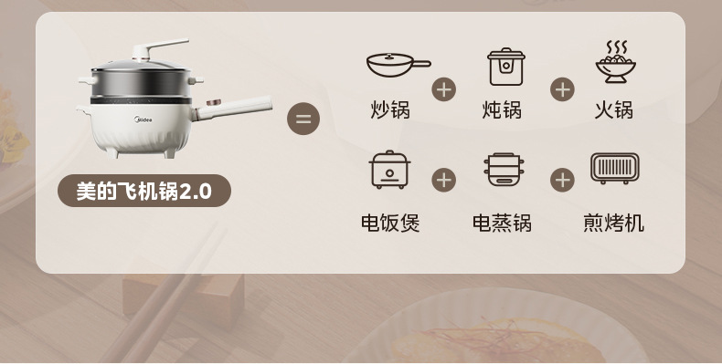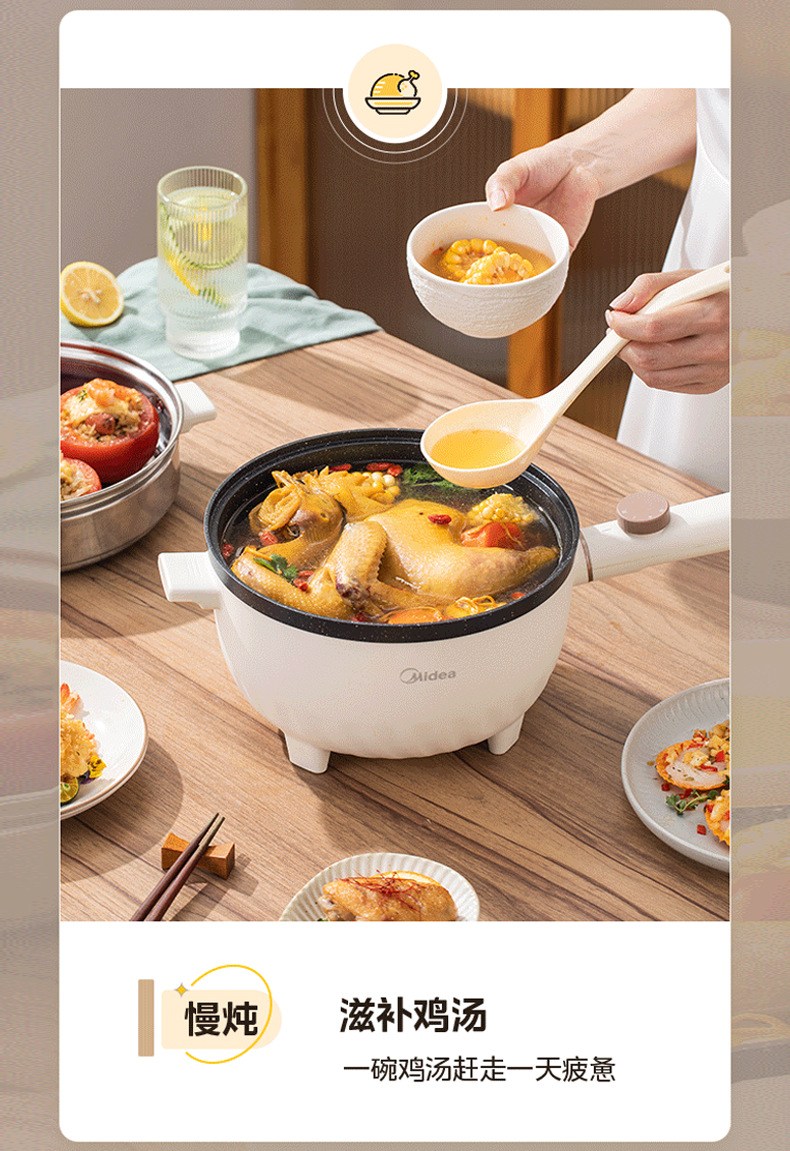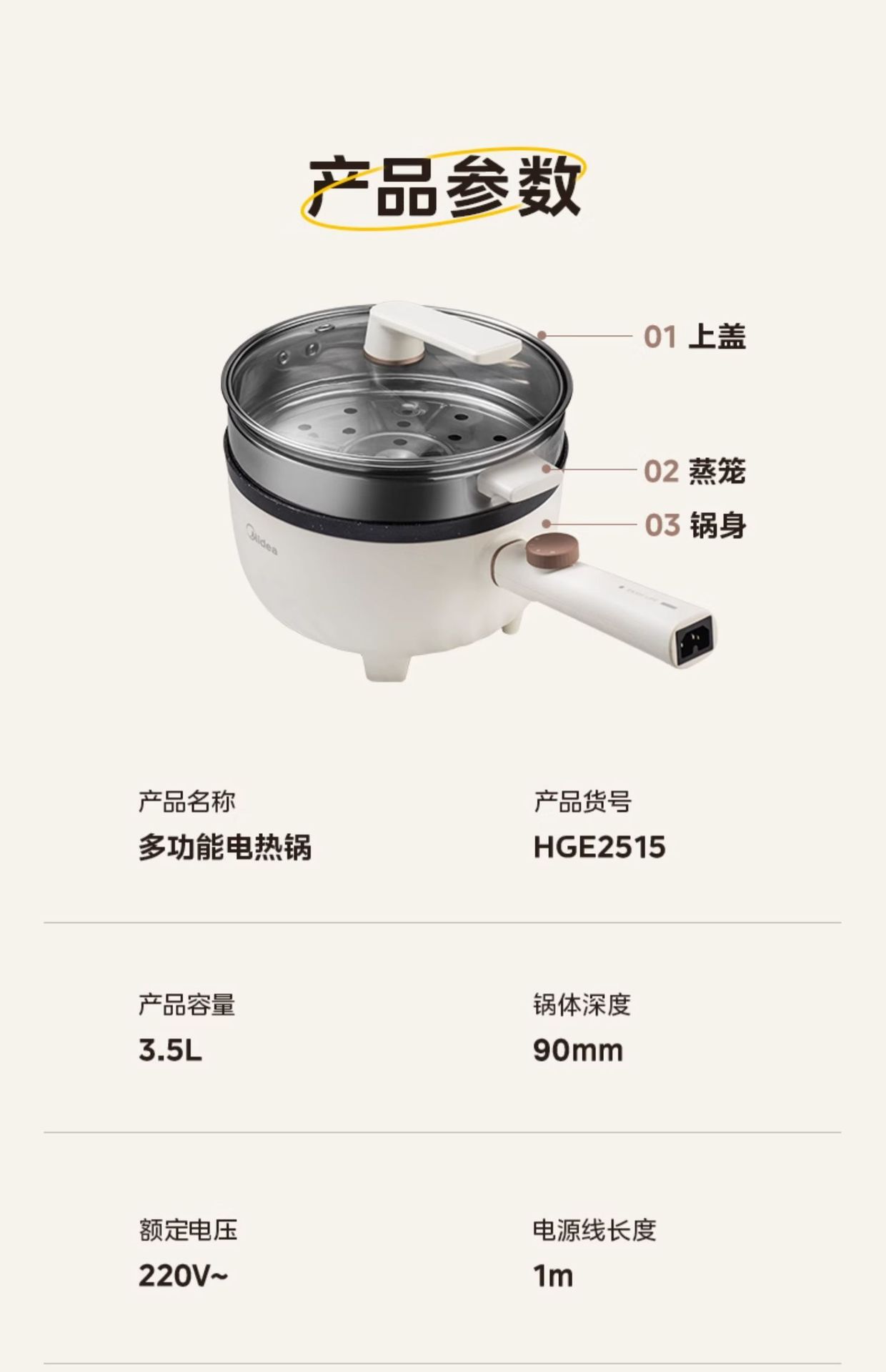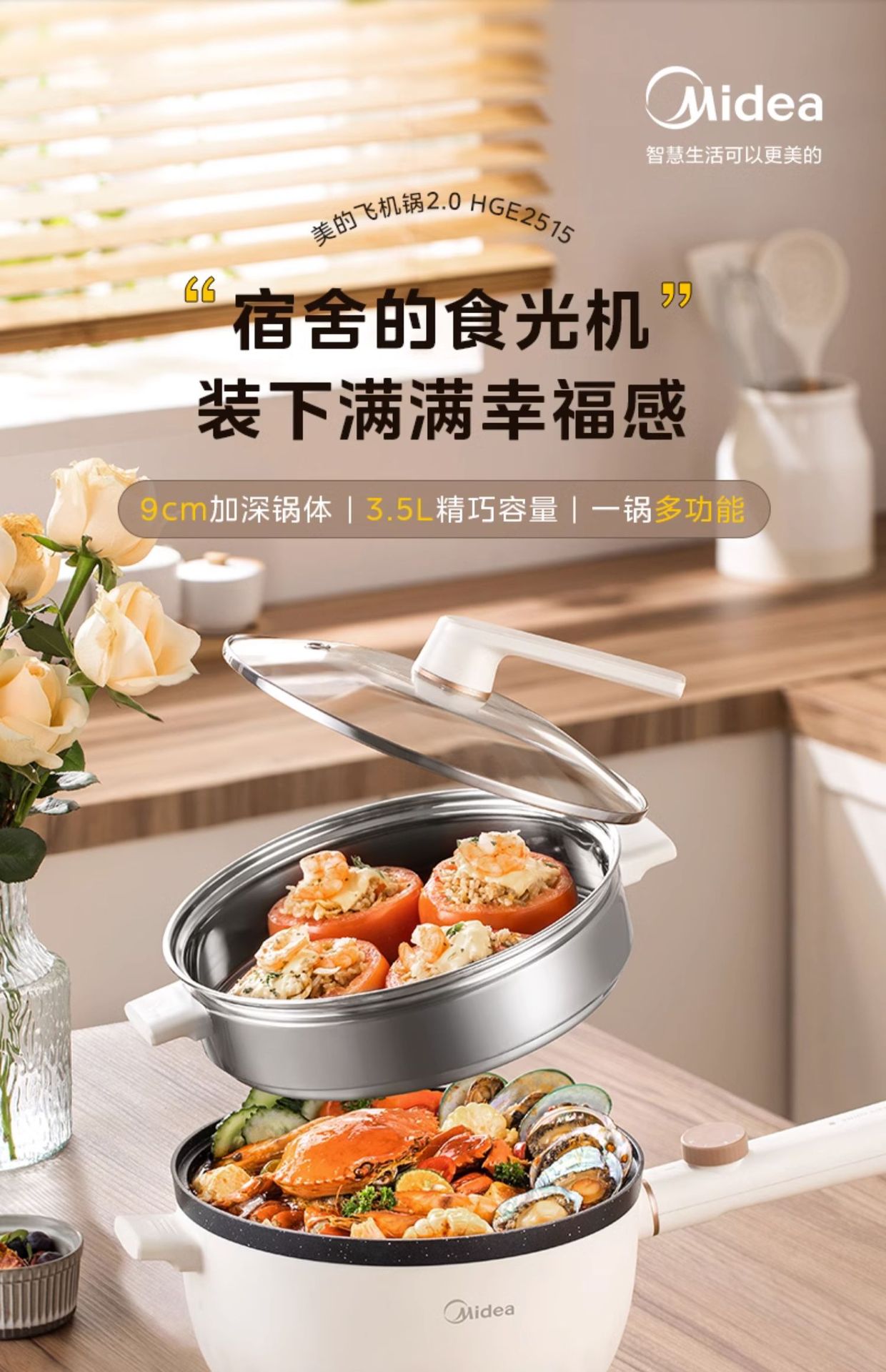 Midea electric wok household cooking pot multi-functional cooking hot pot dormitory steamer integrated pot MC-HGE2515