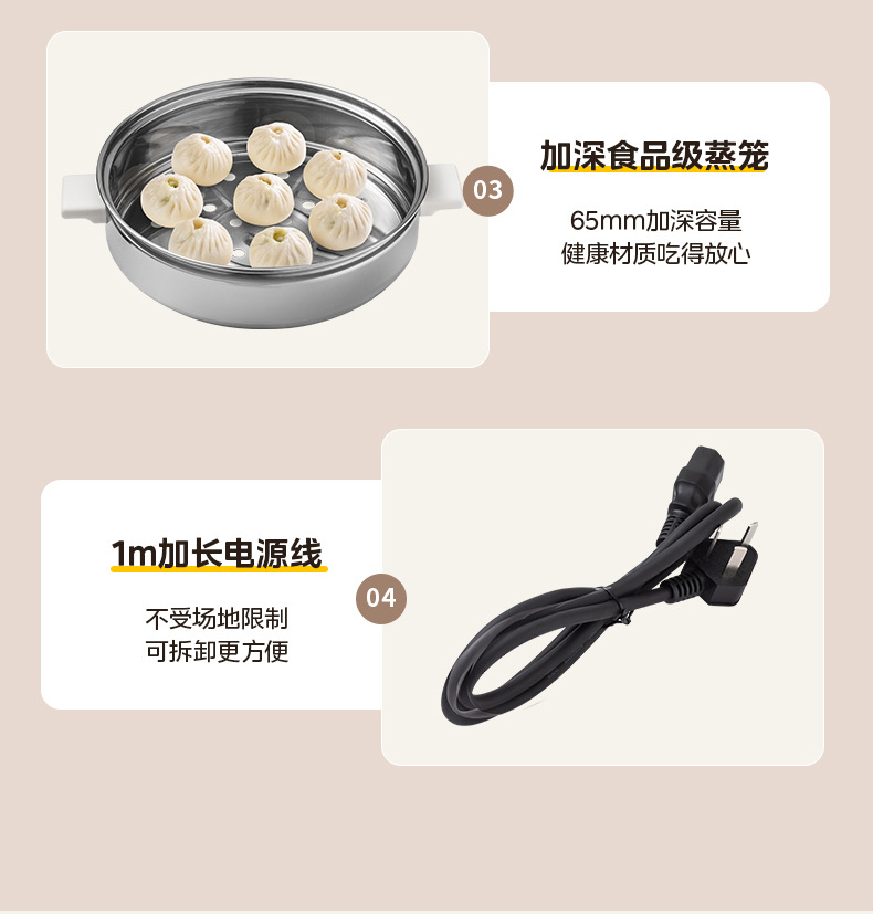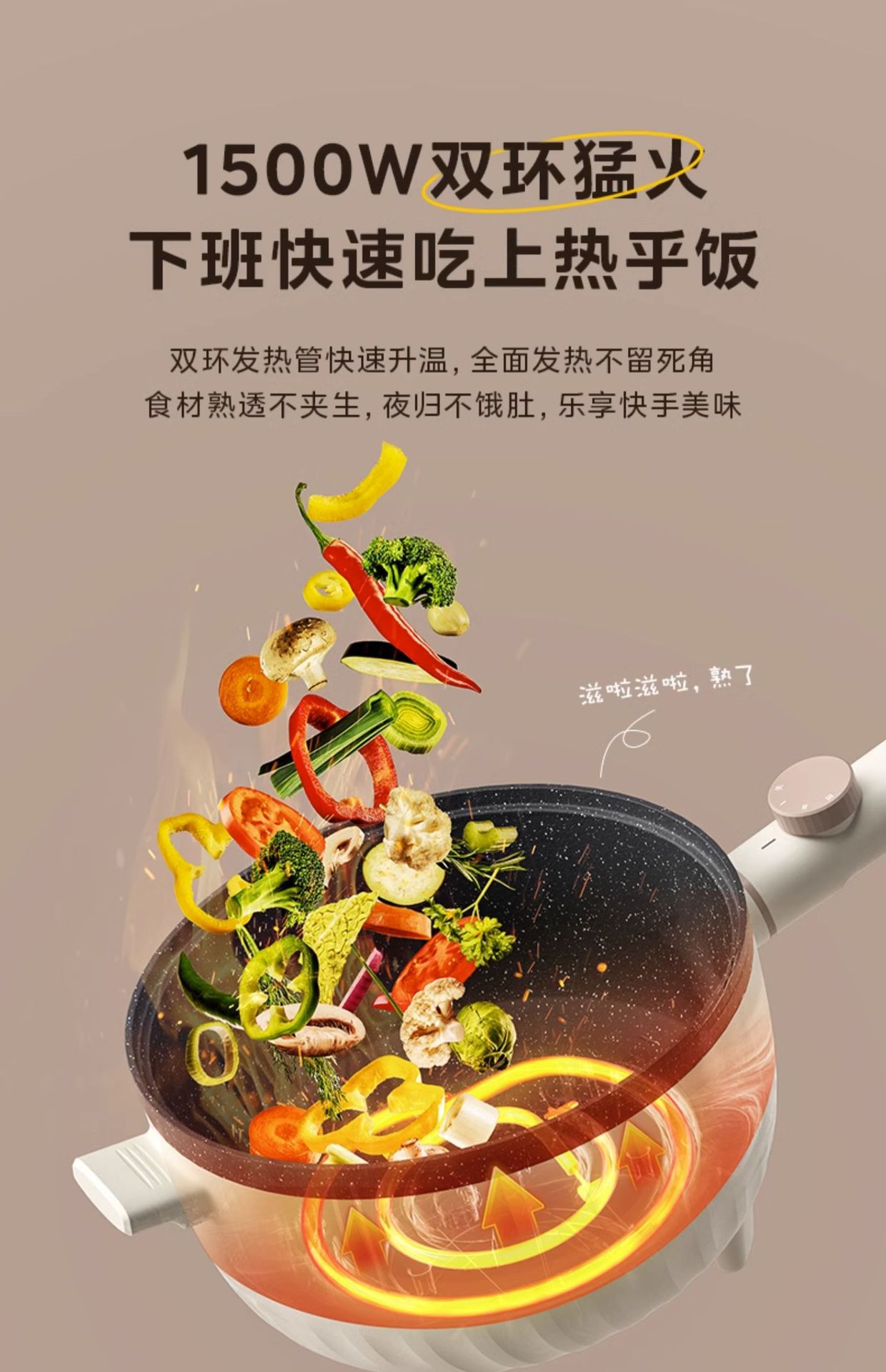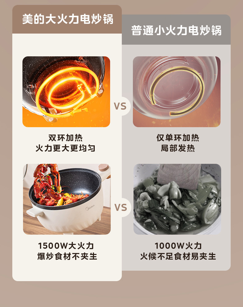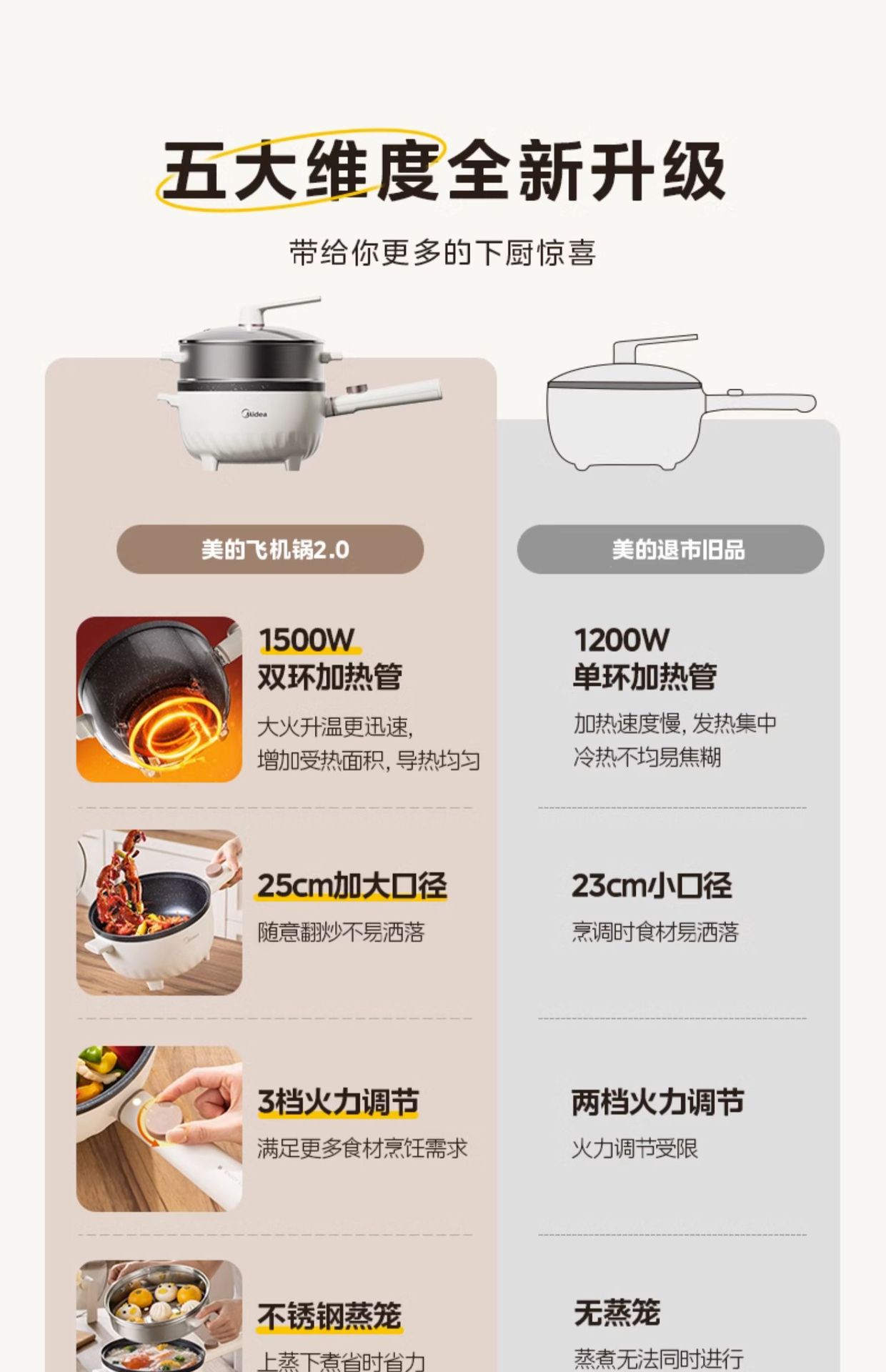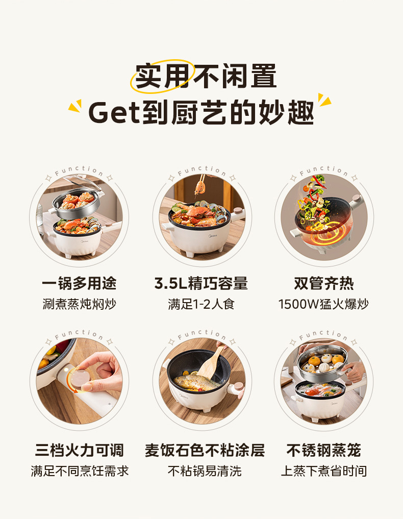 Midea electric wok household cooking pot multi-functional cooking hot pot dormitory steamer integrated pot MC-HGE2515