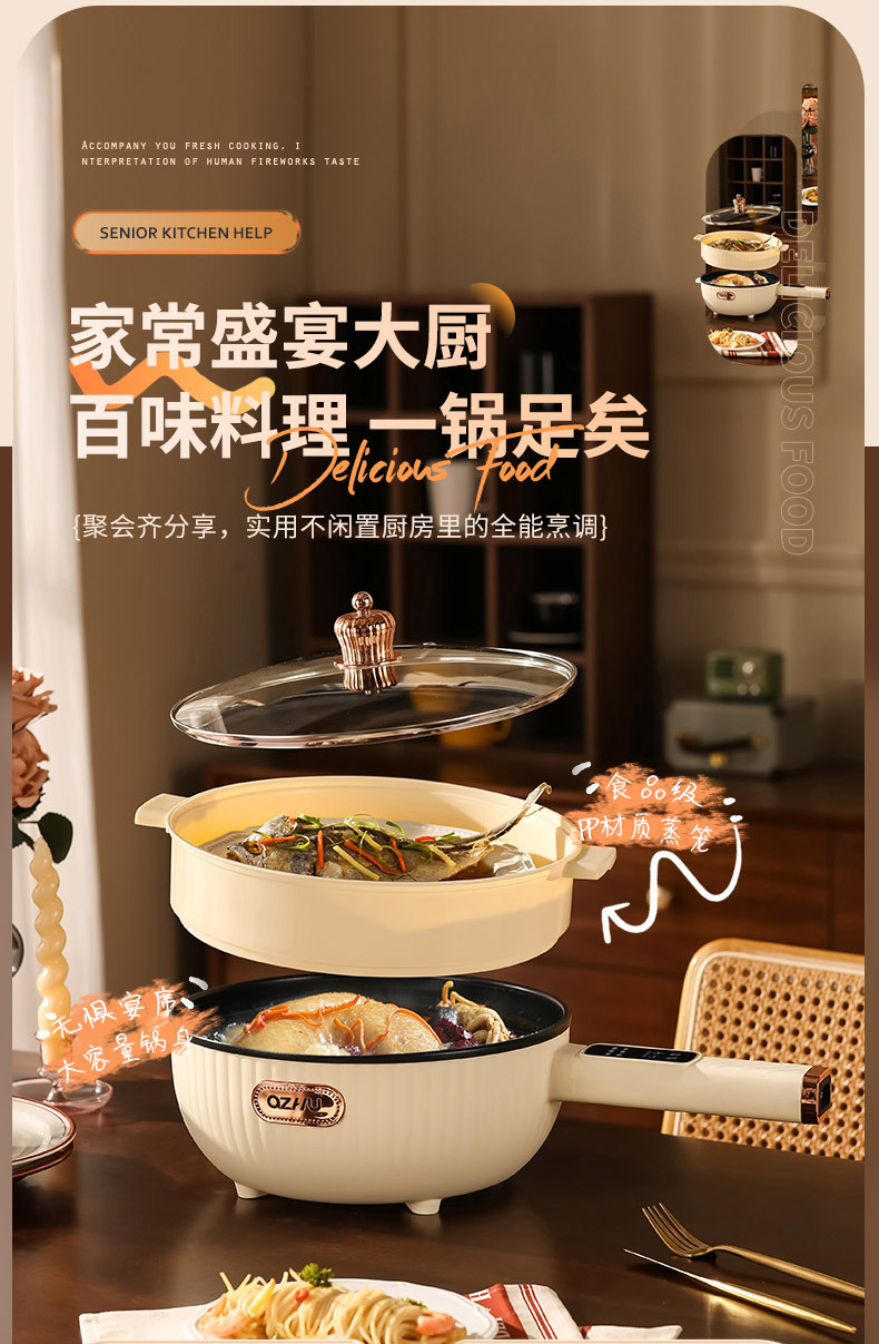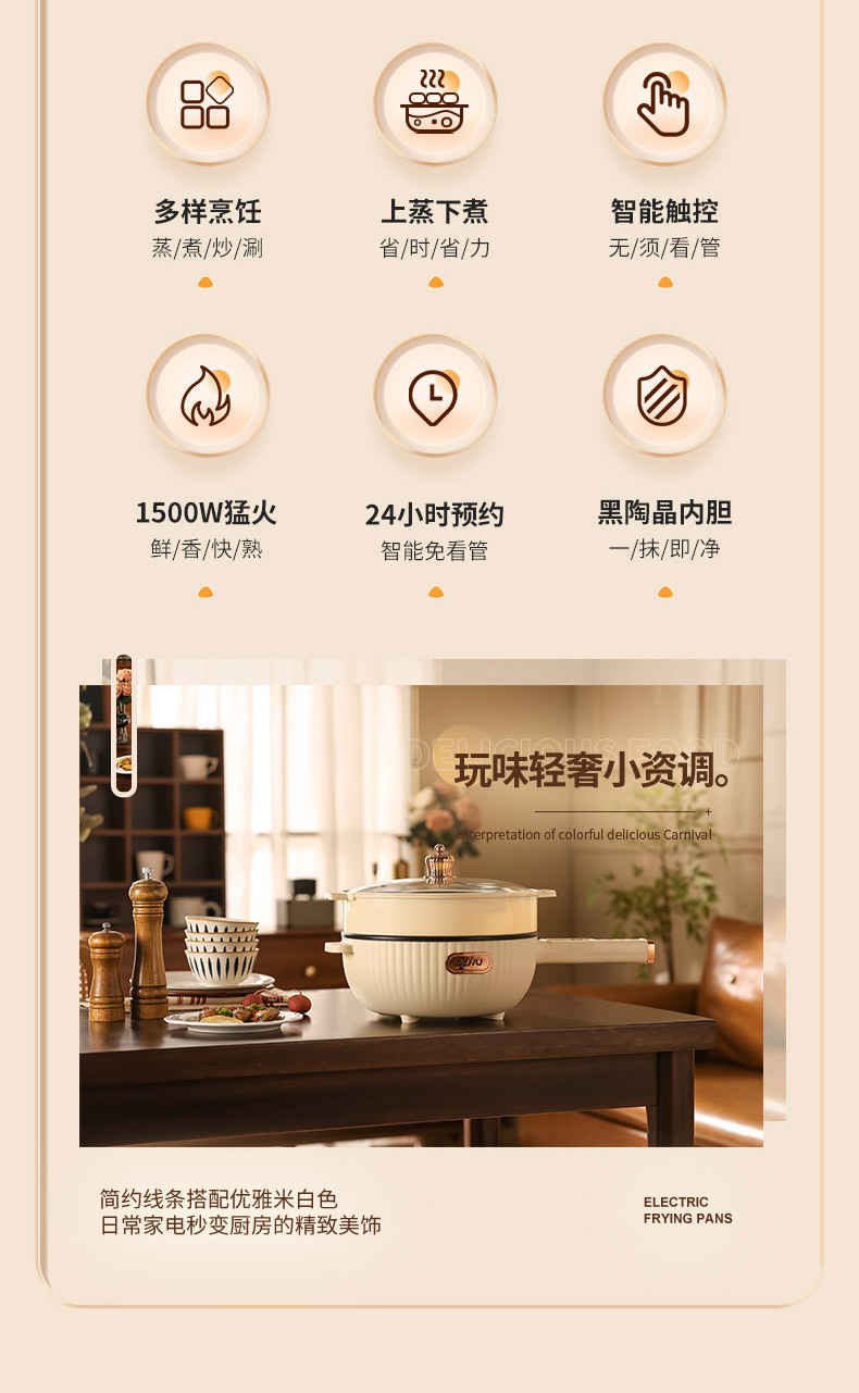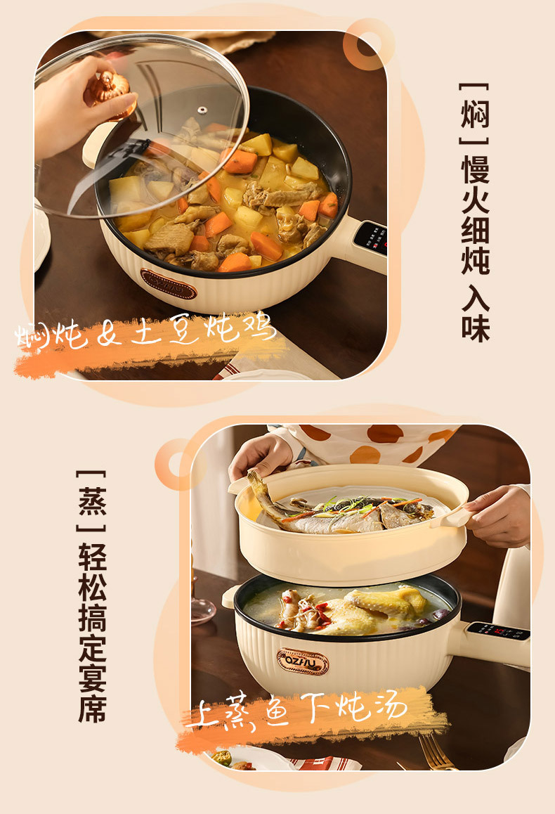Electric wok automatic electric wok integrated multi-functional household intelligent wok cooking non-stick electric hot pot