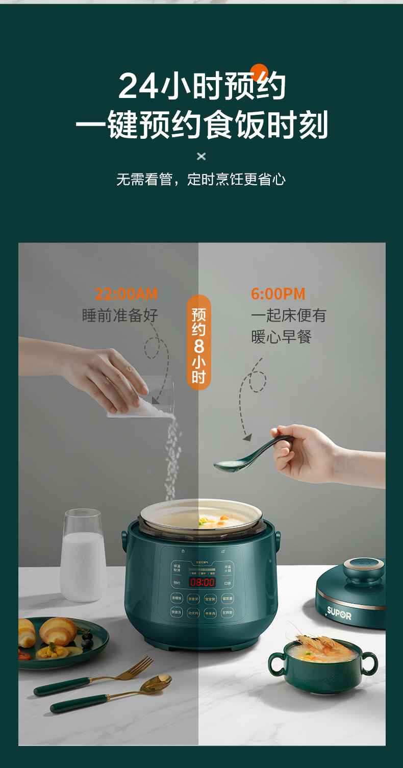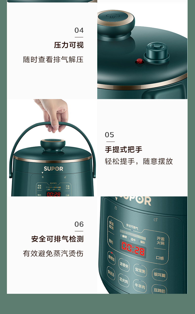 Supor Electric Pressure Cooker Household 2-3 Small Smart Mini Multifunctional Small Rice Cooker High Pressure 23YC8062Q