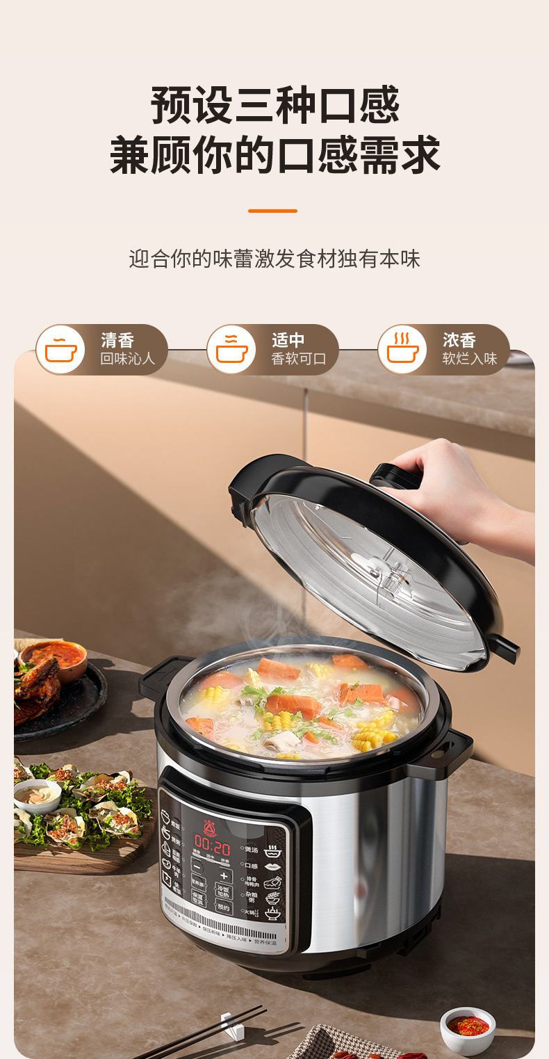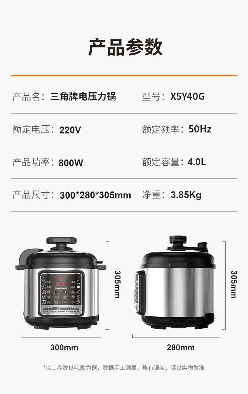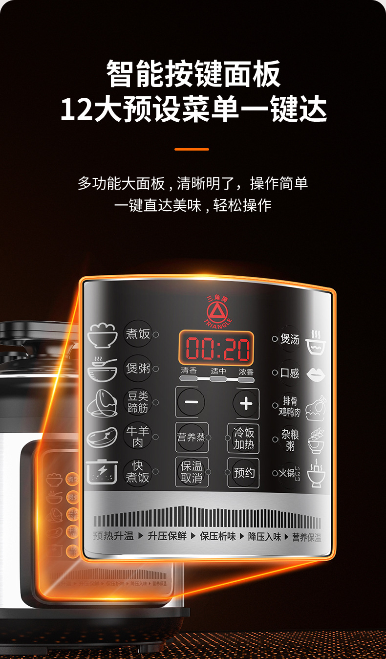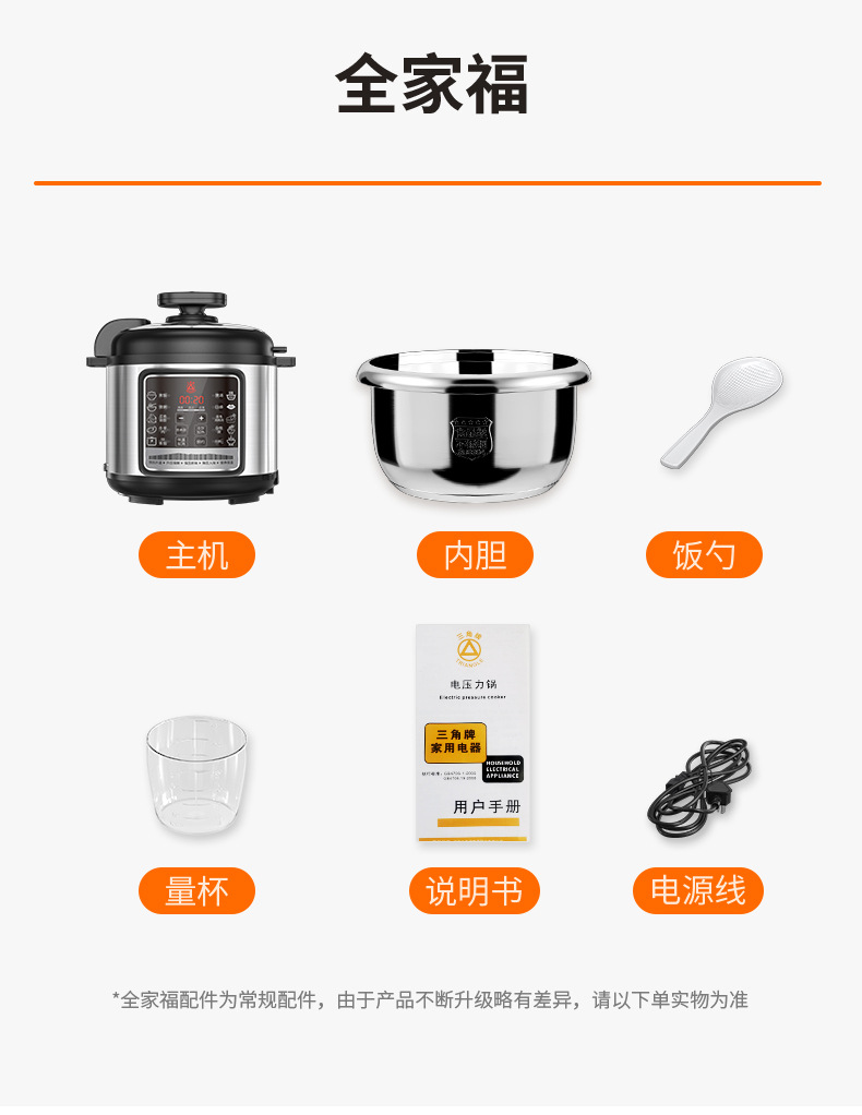Triangle rice cooker electric pressure cooker 4L household stainless steel electric pressure cooker 5L dormitory multi-functional 6L rice cooker