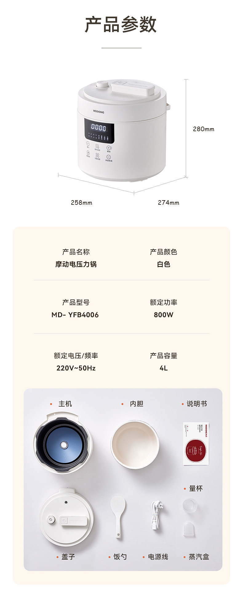 2、800w大火力搭配70kpa高压,节能省时,缩短烹饪时长,高效炖煮不久等