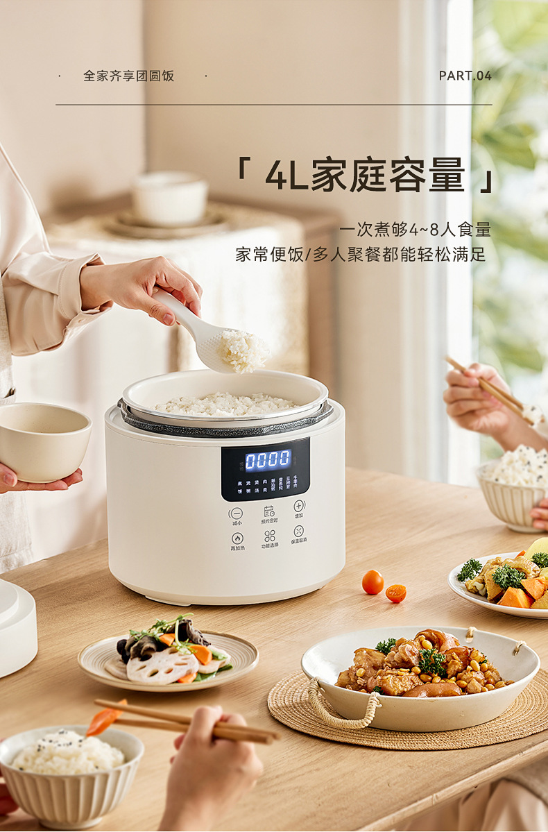 5、4L家庭容量,一次煮够4~8人食量,多人聚餐也能轻松满足