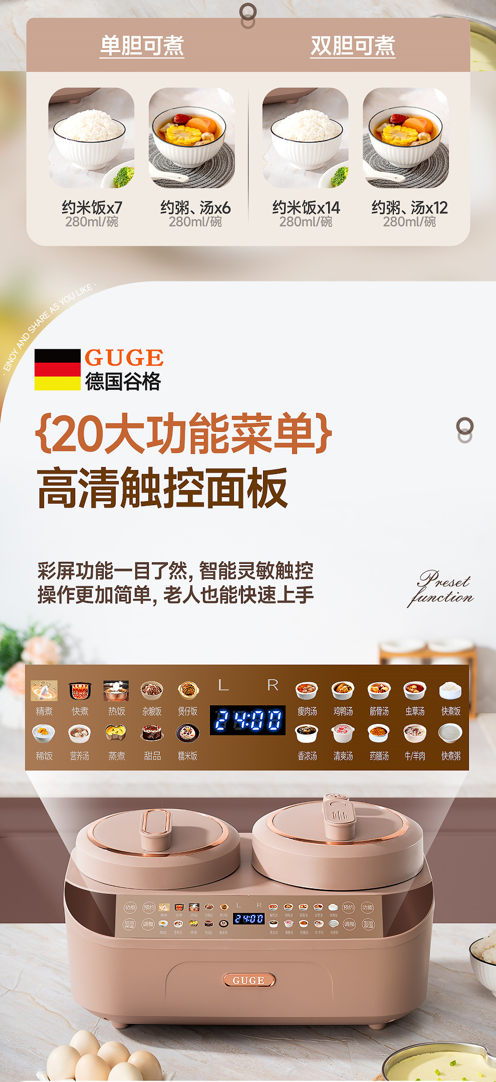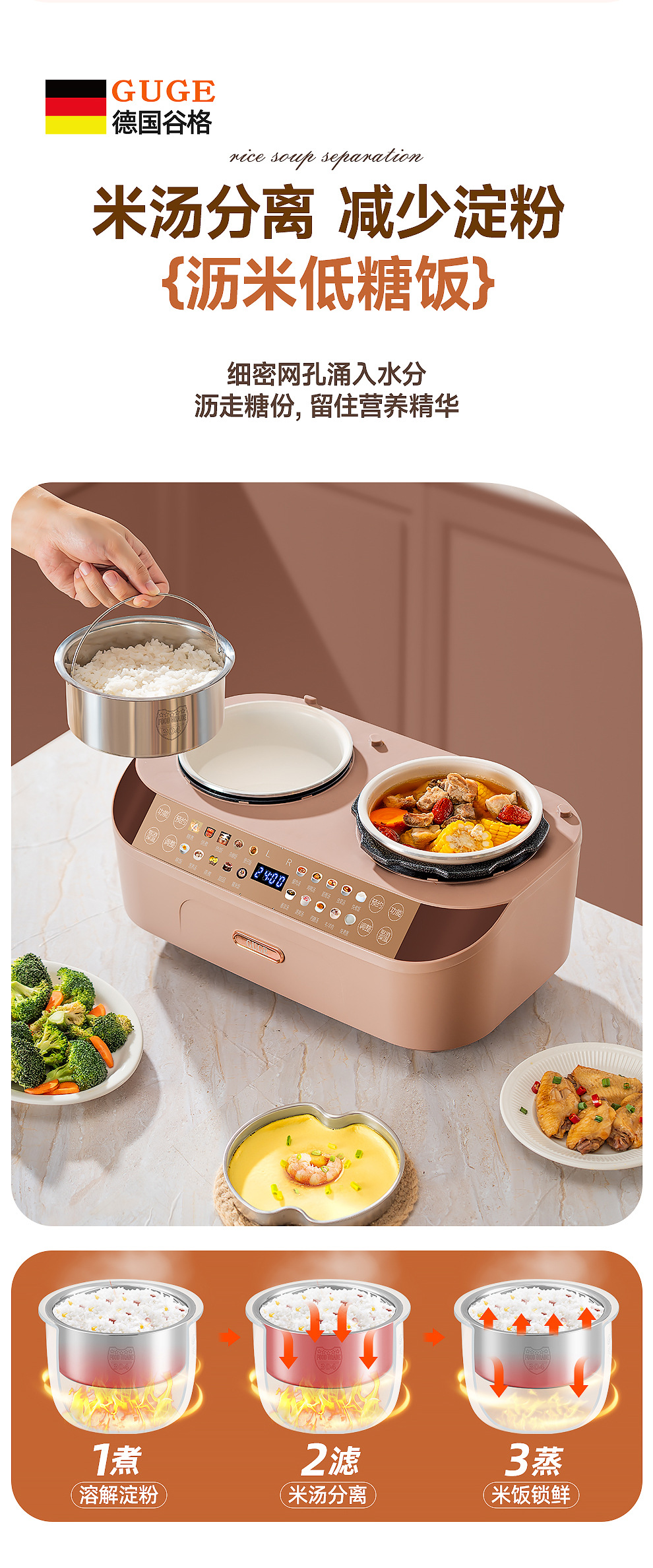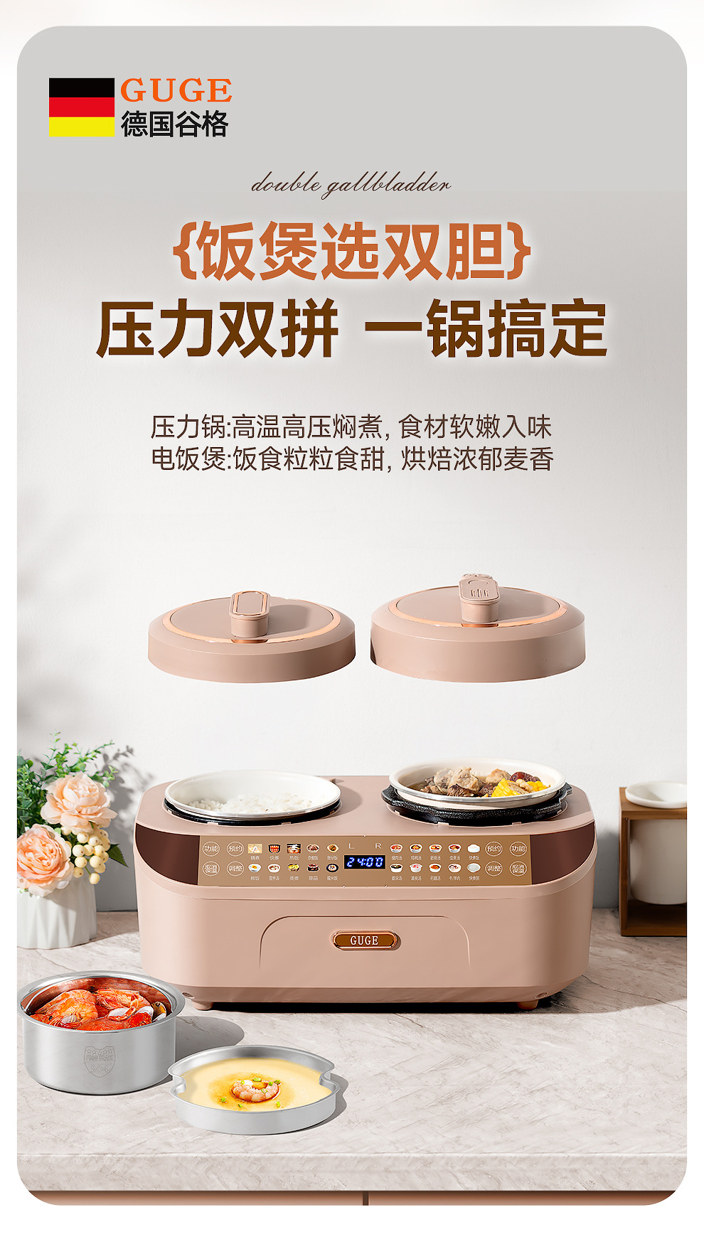 German GUGE double-liner rice cooker electric pressure cooker automatic multi-functional household double-piece double-control