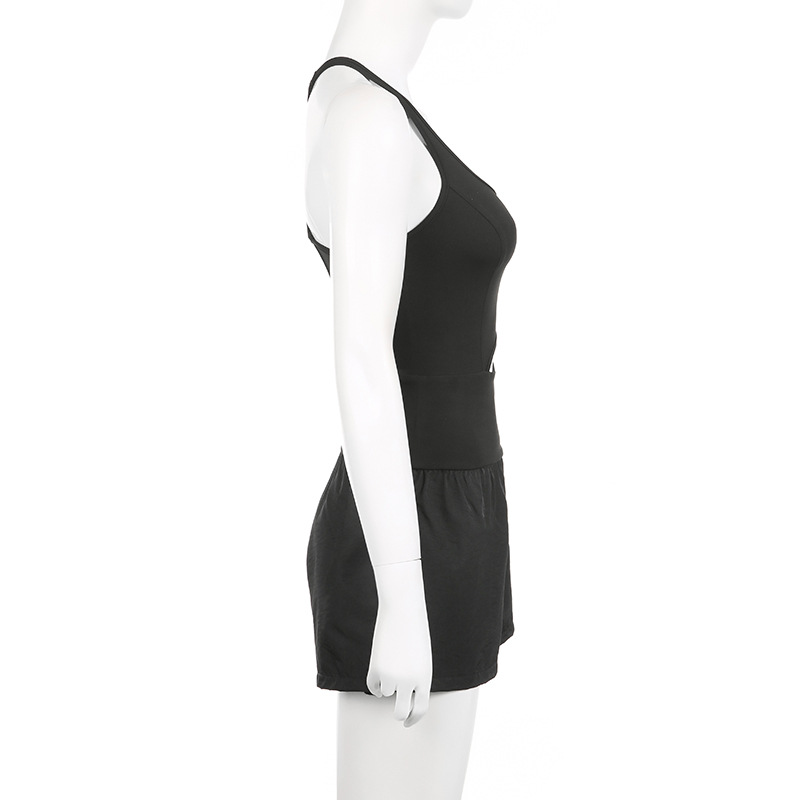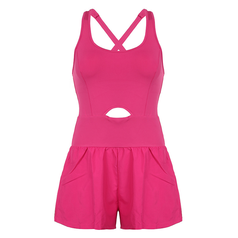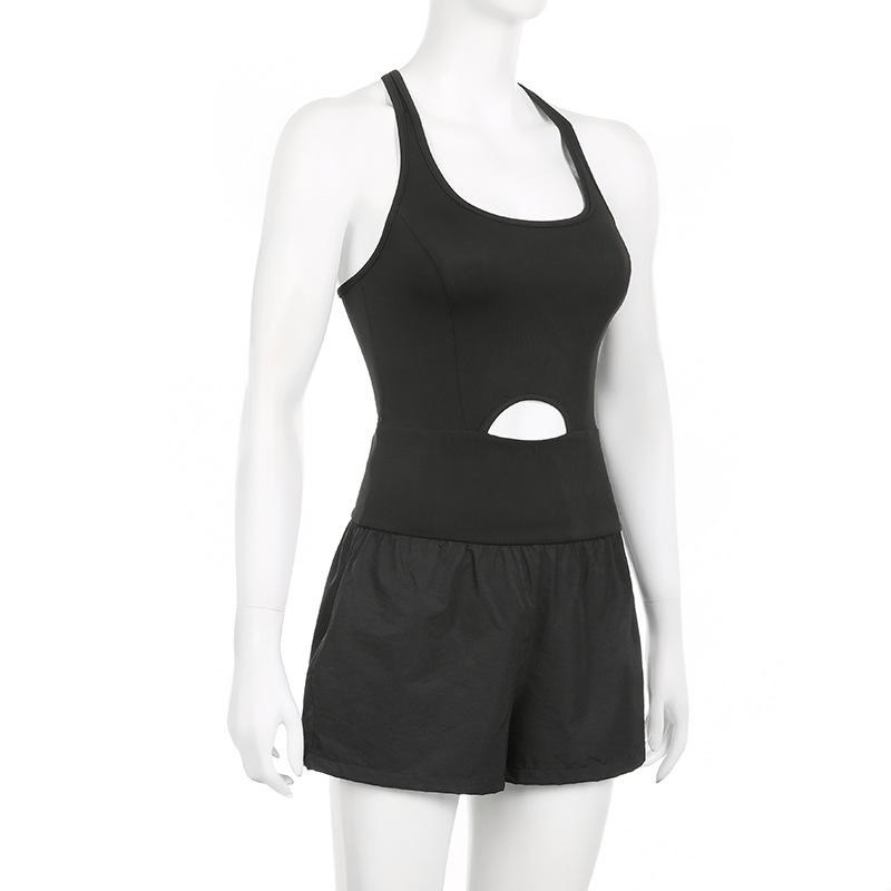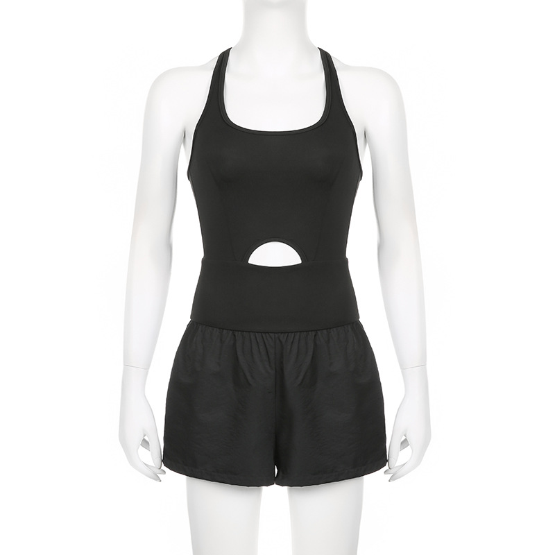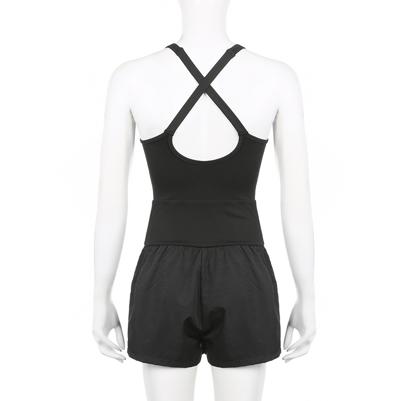 European and American Fashion Sports Women's Yoga Shorts Hollow Cross Beautiful Back Loose Comfortable Fitness Clothes Vest Jumpsuit