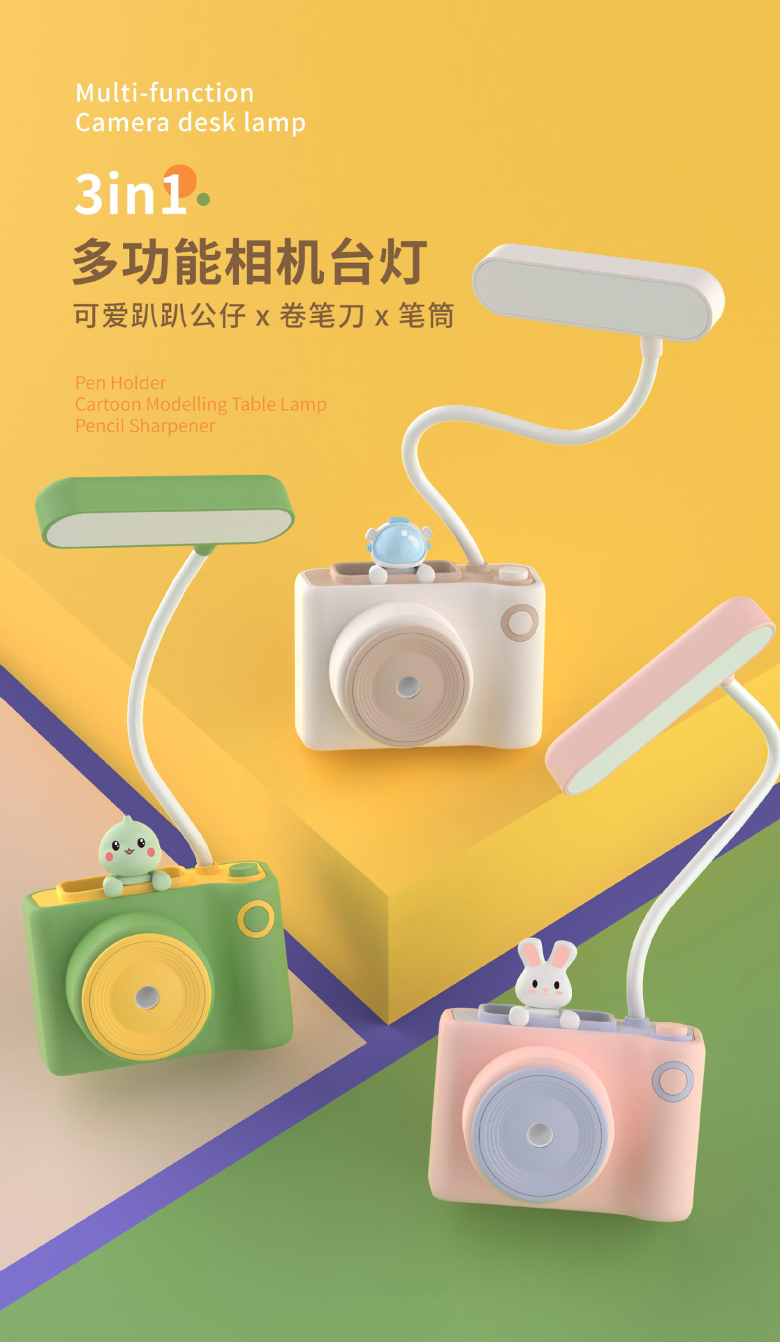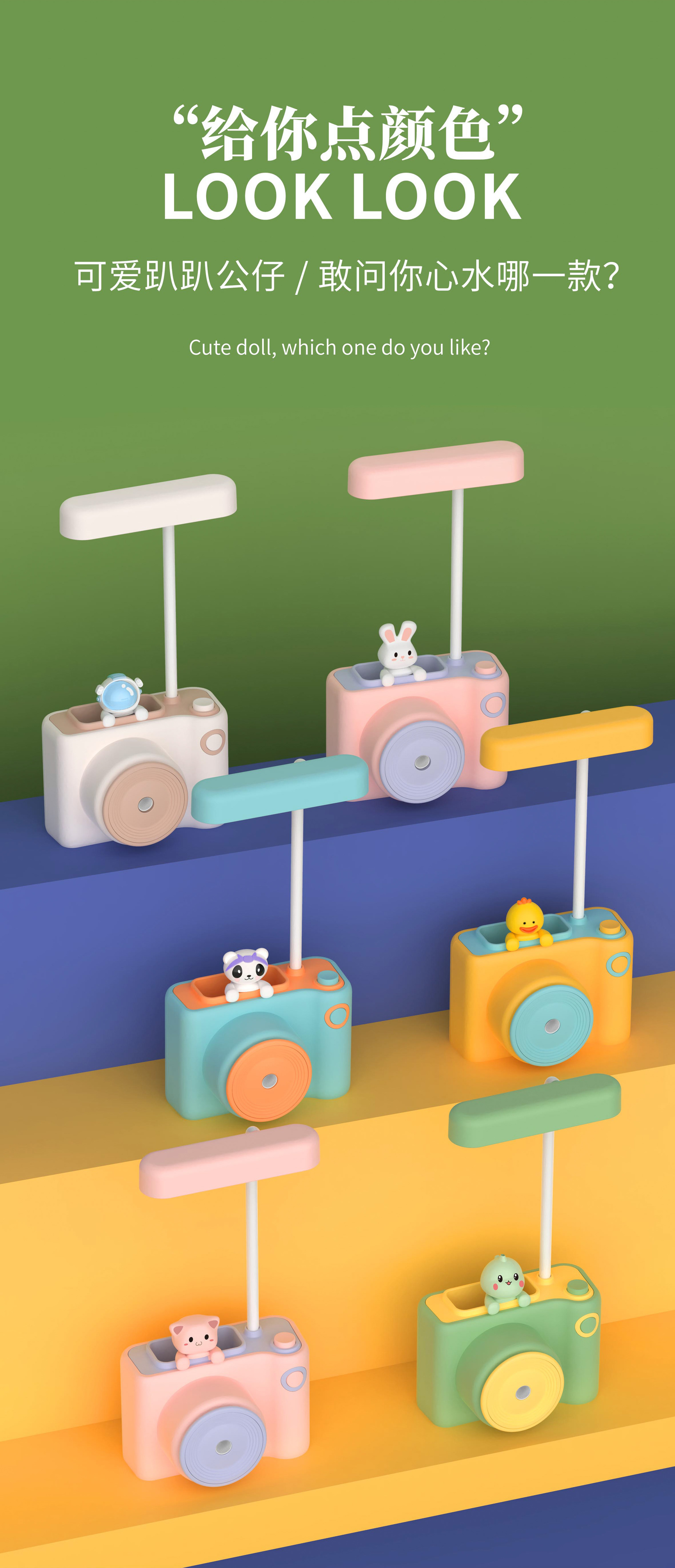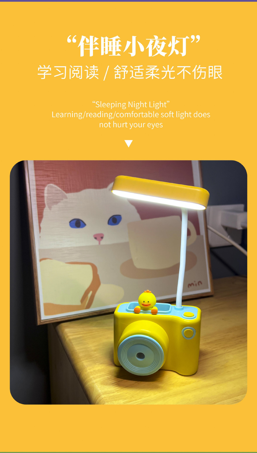 Creative portable children's small table lamp cartoon USB rechargeable camera night light desktop girl gift dormitory night light