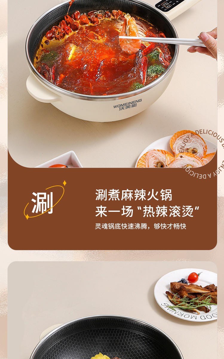 食品级不粘锅不粘好清洗,节能功率适用多场合,在家宿舍办公旅游随心所用,让您方便的吃到安心卫生的美食