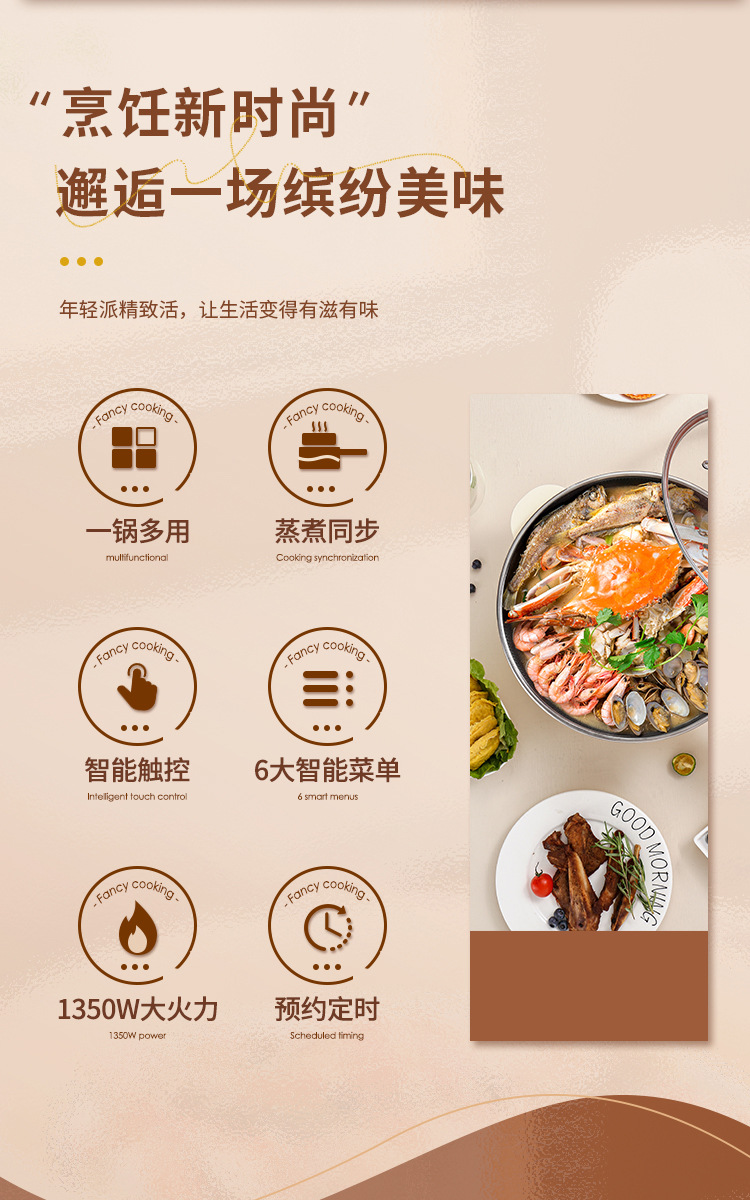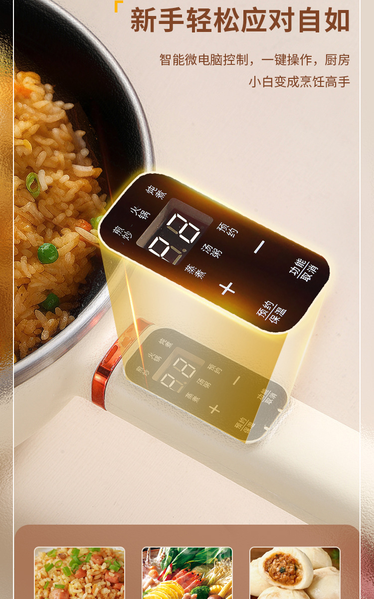 5.智能预约定时,多种功能一键选择,煎炒煮炸蒸样样精通 6.小巧方便,宿舍办公室家用,适合多个场景