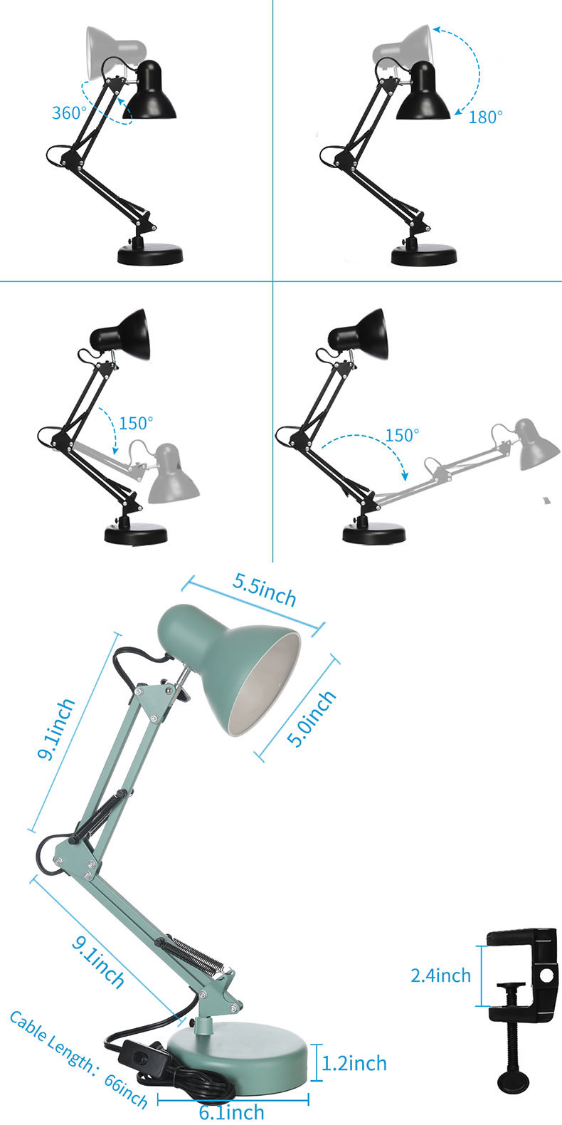 Amazon Cross-border Hot Selling American Long Arm Desk Lamp Students Write, Learn to Read, Bedroom Office Work Plug-in