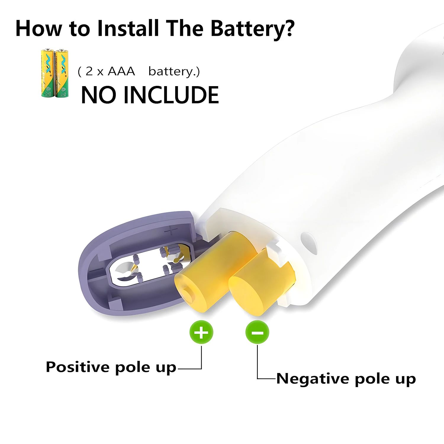 To ensure your thermometer works properly, please make sure to install the batteries in alternating directions — one with the positive (+) side up, and the other with the negative () side up.