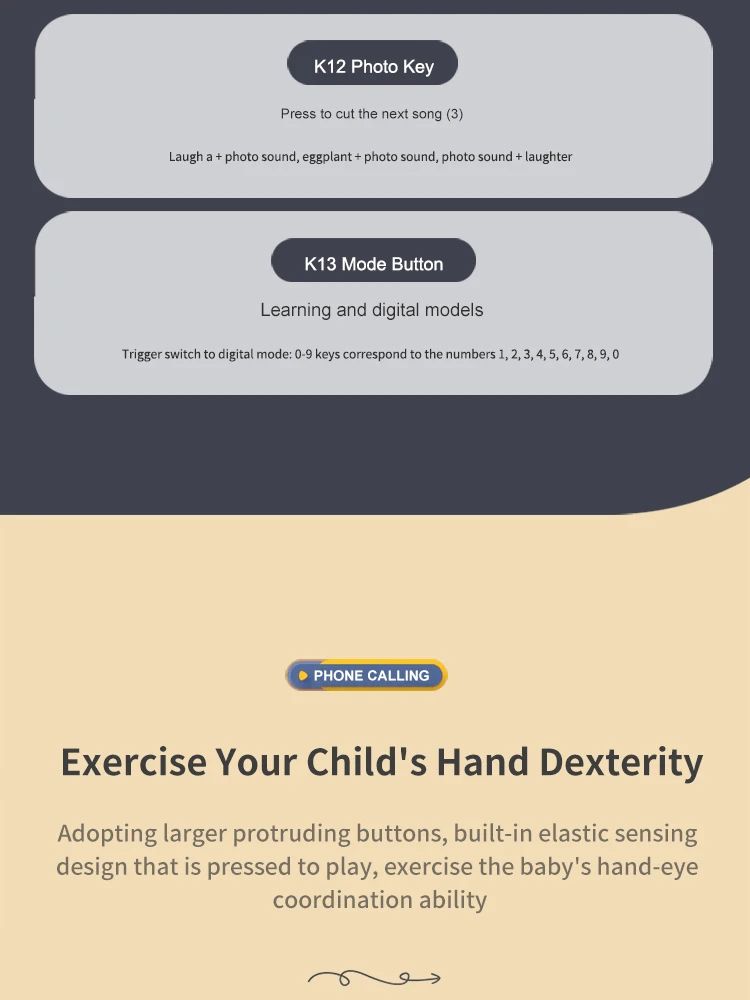 1. Cute appearance - analog dial and cute cartoon style will attract baby's attention